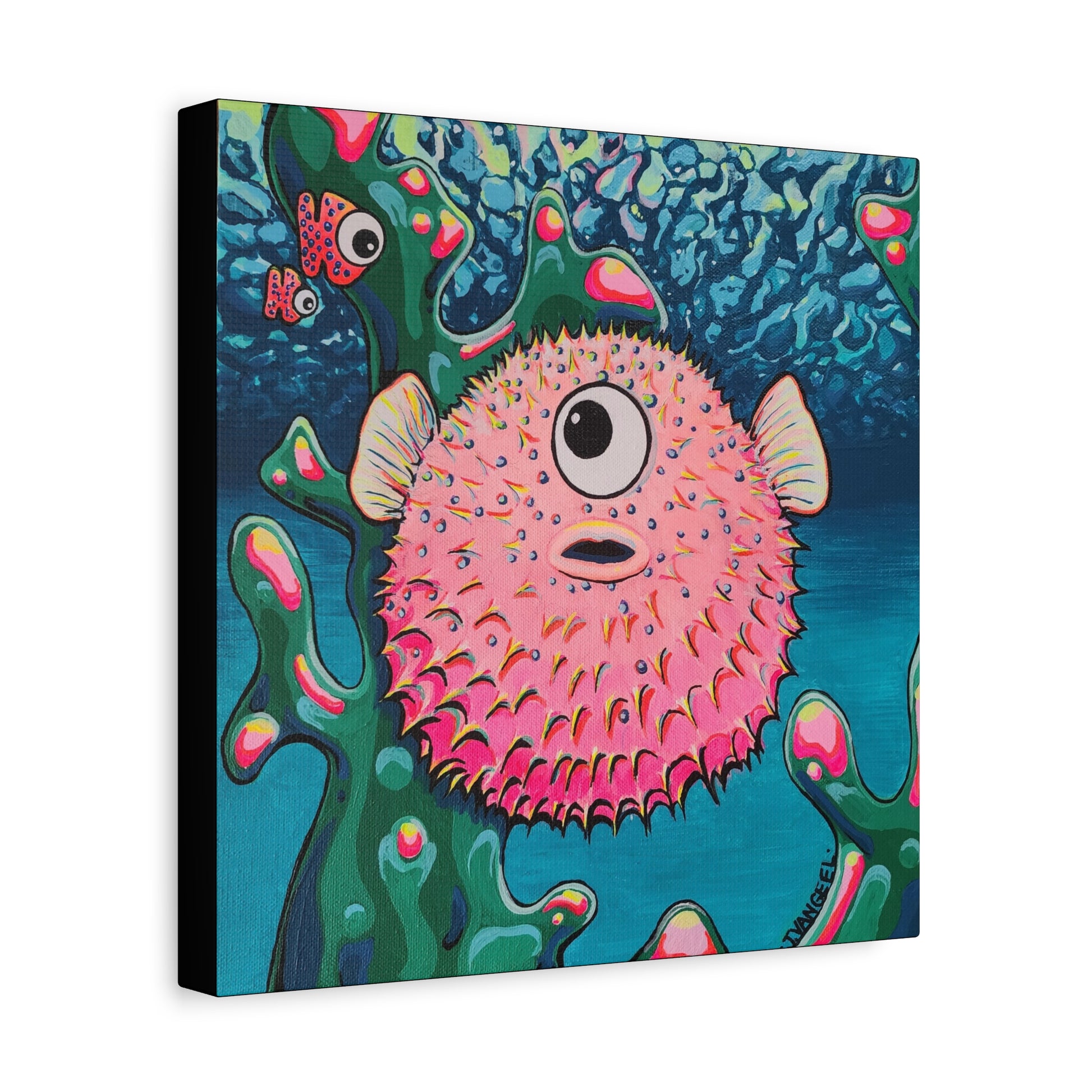 Vibrant and colorful pufferfish print on a matte canvas that adds a fun and quirky touch to any space. Perfect for ocean lovers and those who enjoy whimsical decor. Ideal for decorating nurseries, kids' rooms, or beach-themed spaces. Great for birthdays, housewarming gifts, or adding a pop of color to any room.