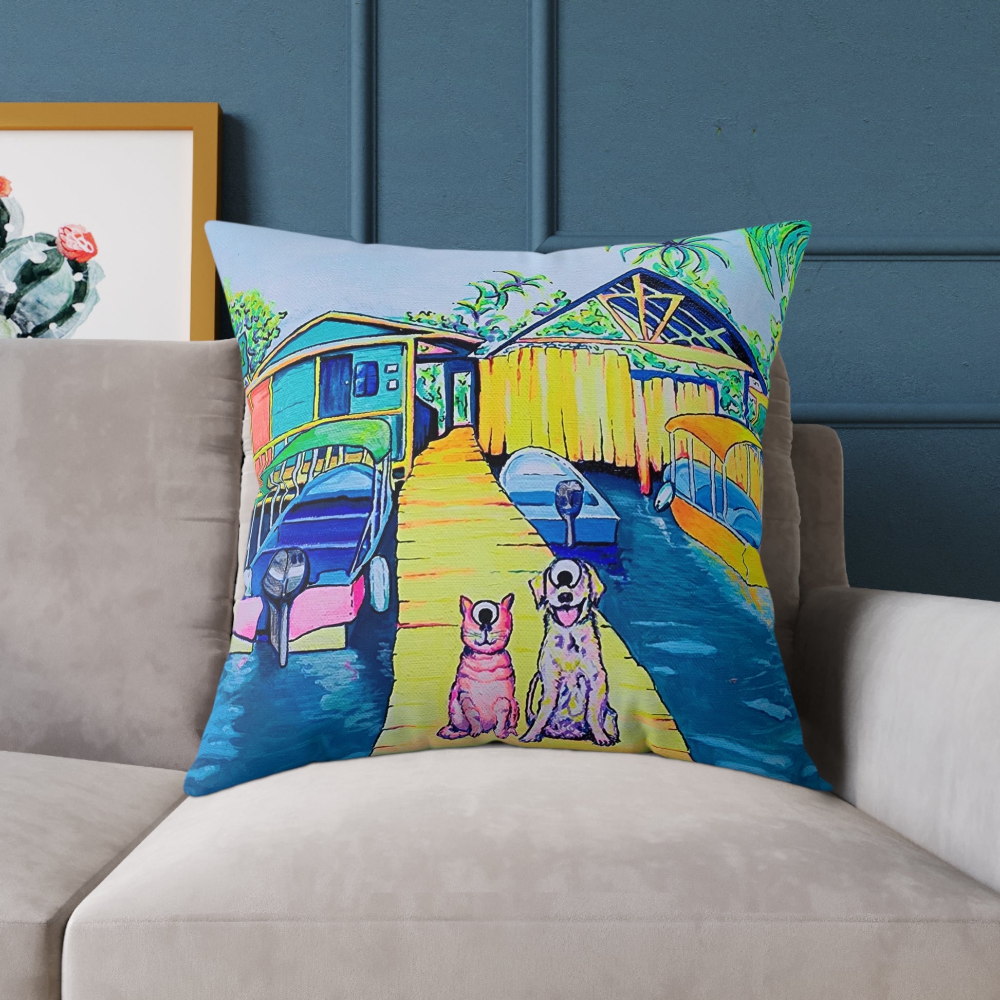 Cyclops Cat and Dog in Bocas Art Canvas Decorative Pillow