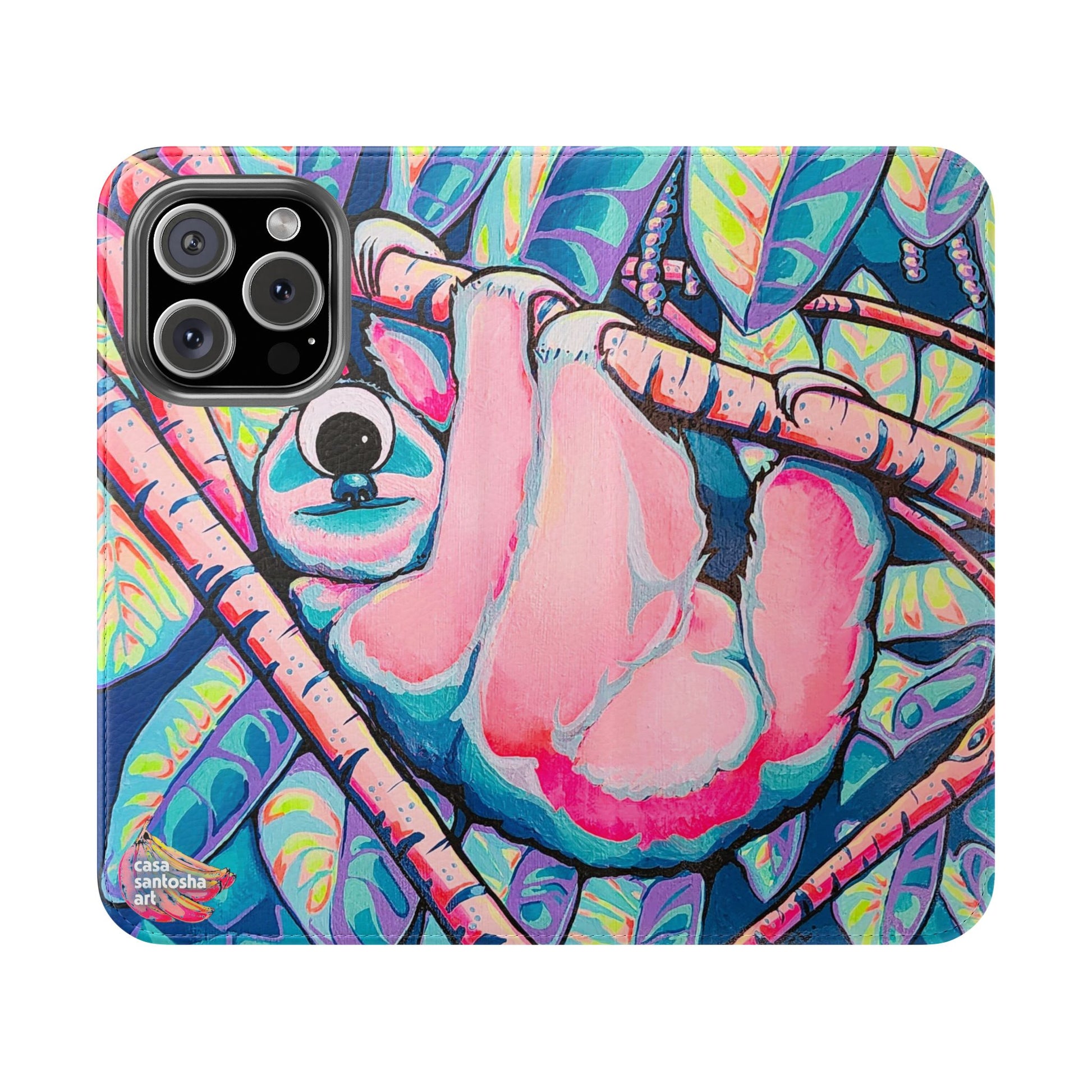Cyclops Sloth Flip Phone Case – Wallet Cover with Card Slots