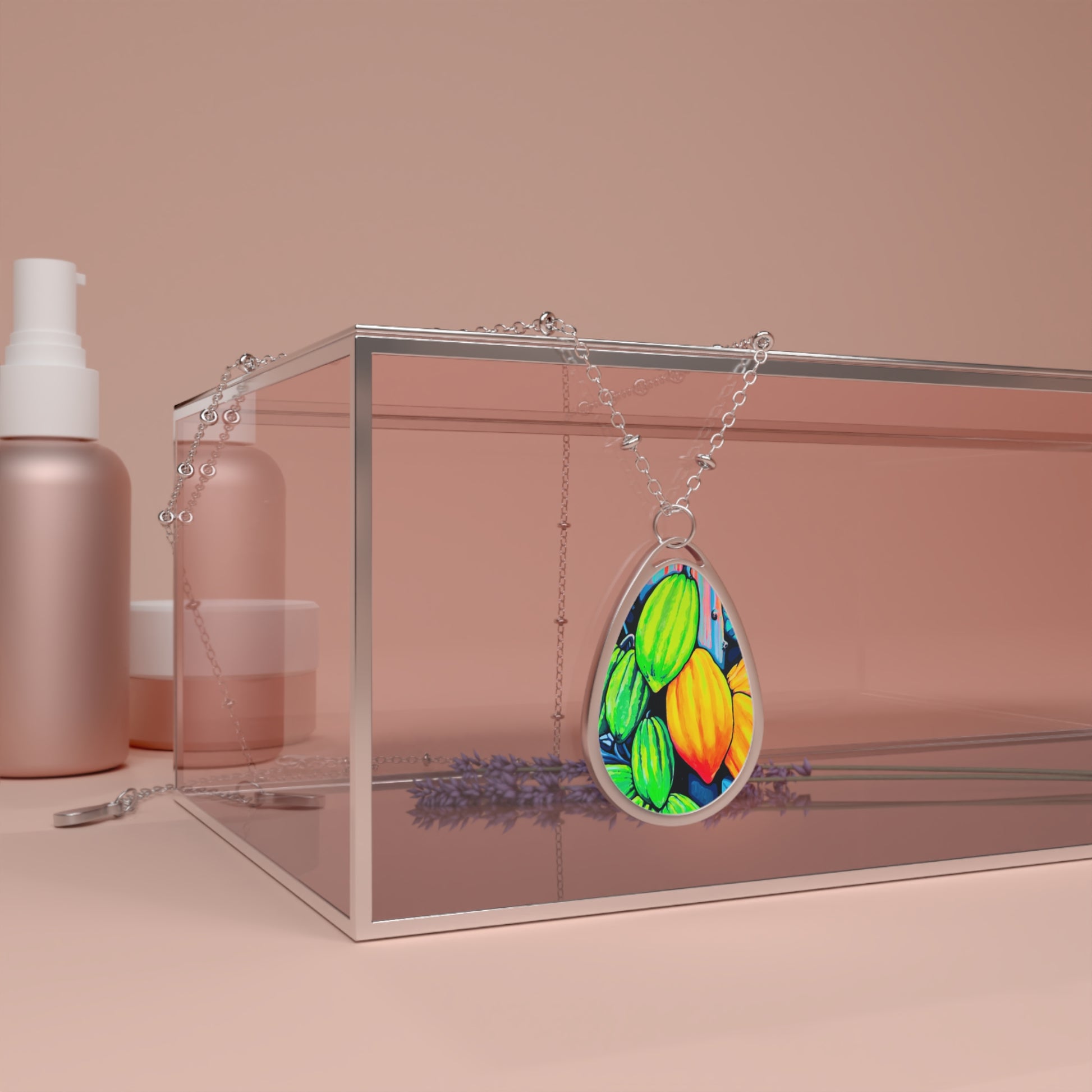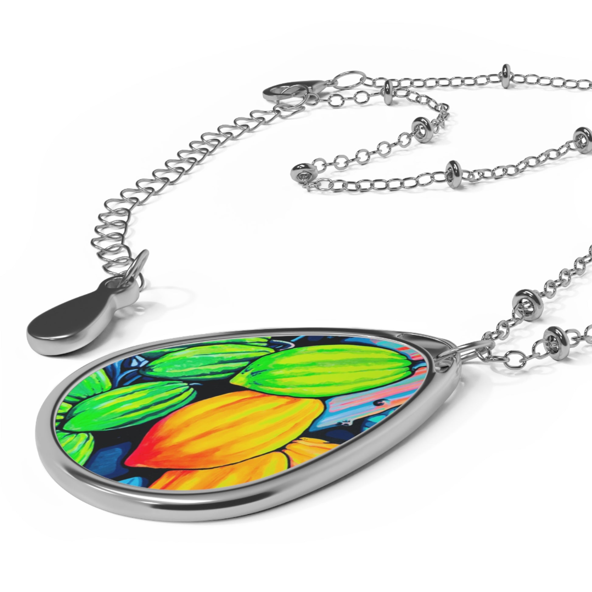 This Neon Cacao Necklace featuring vibrant colors and a glossy finish. Perfect for those who love whimsical designs and want to make a statement. Ideal for music festivals, hippie gatherings, and everyday wear.