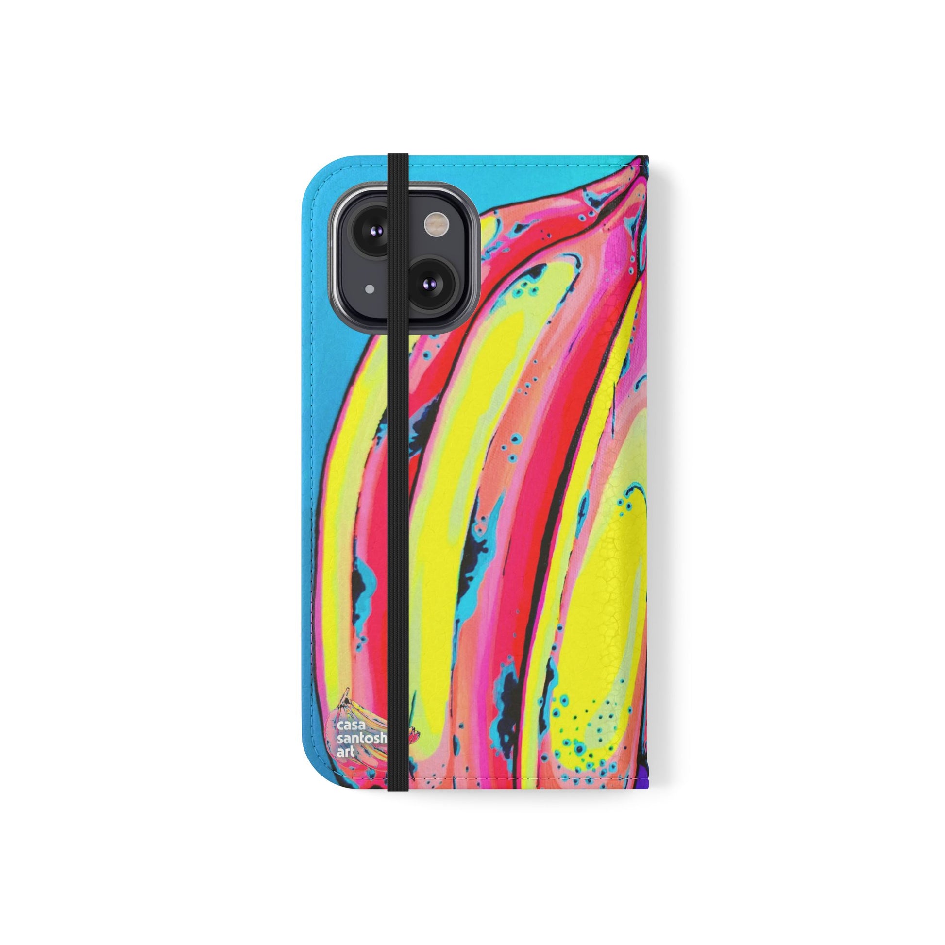 Neon Fat Bananas Flip Phone Case – Wallet Cover with Card Slots