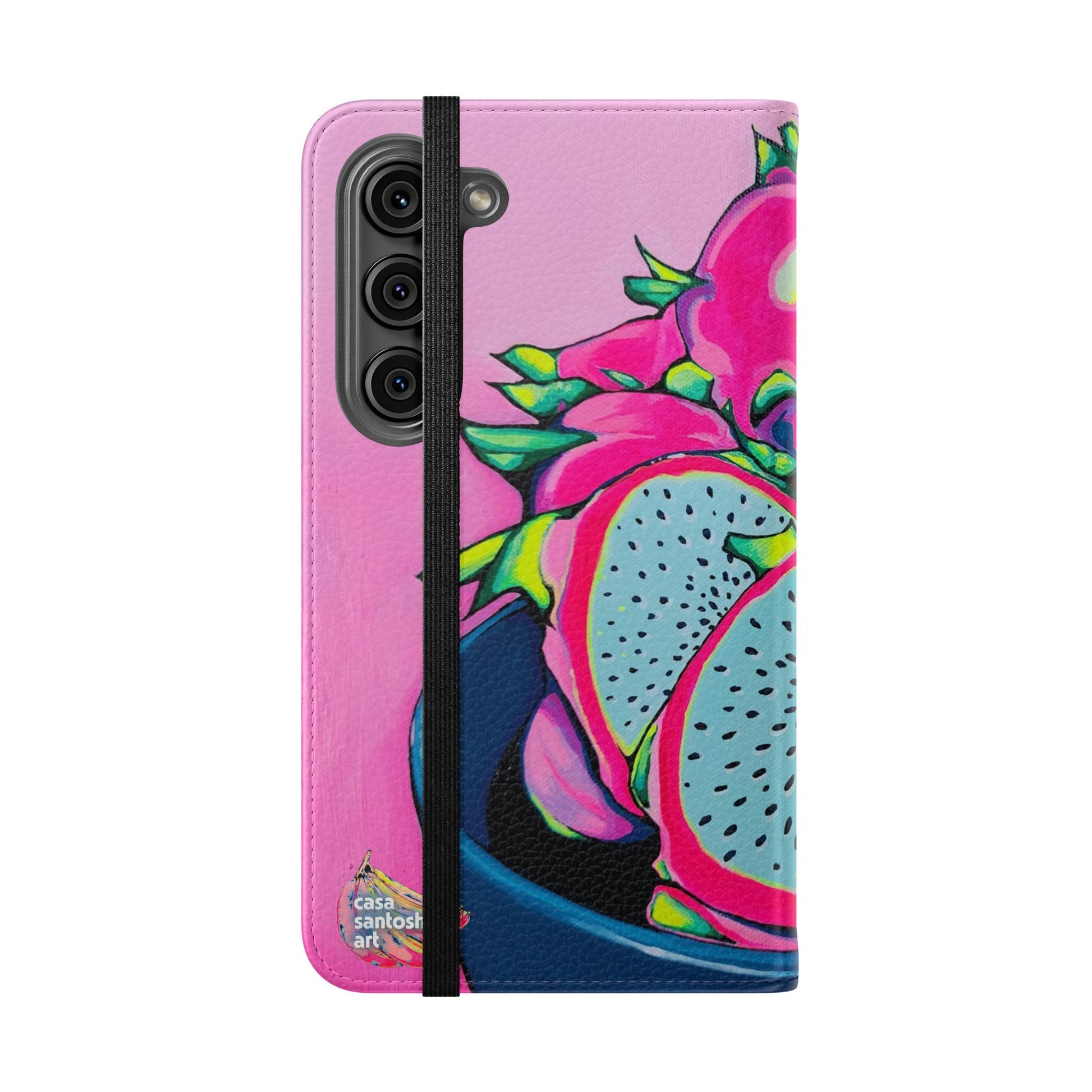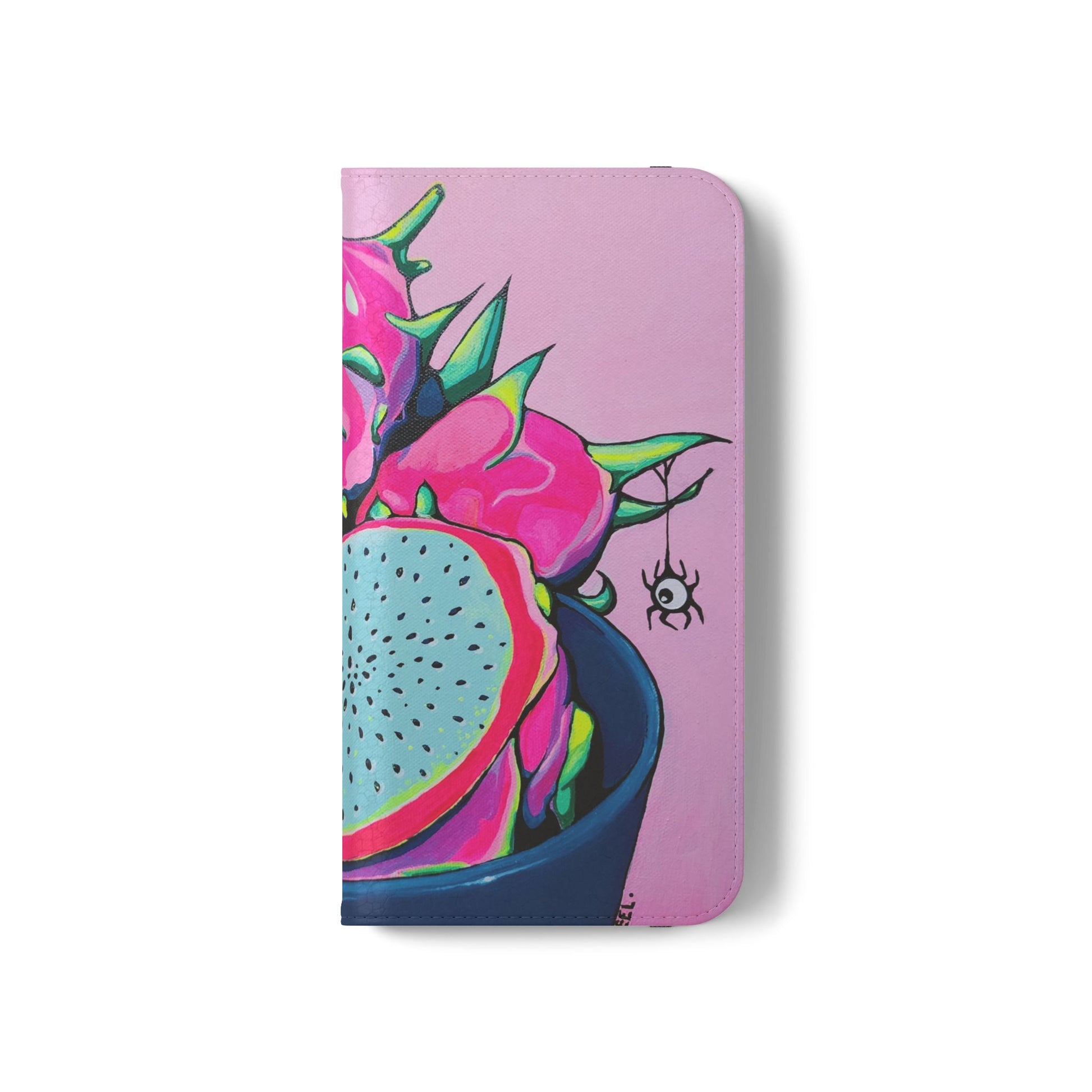 Neon Pink Dragon Fruit Flip Phone Case – Wallet Cover with Card Slots