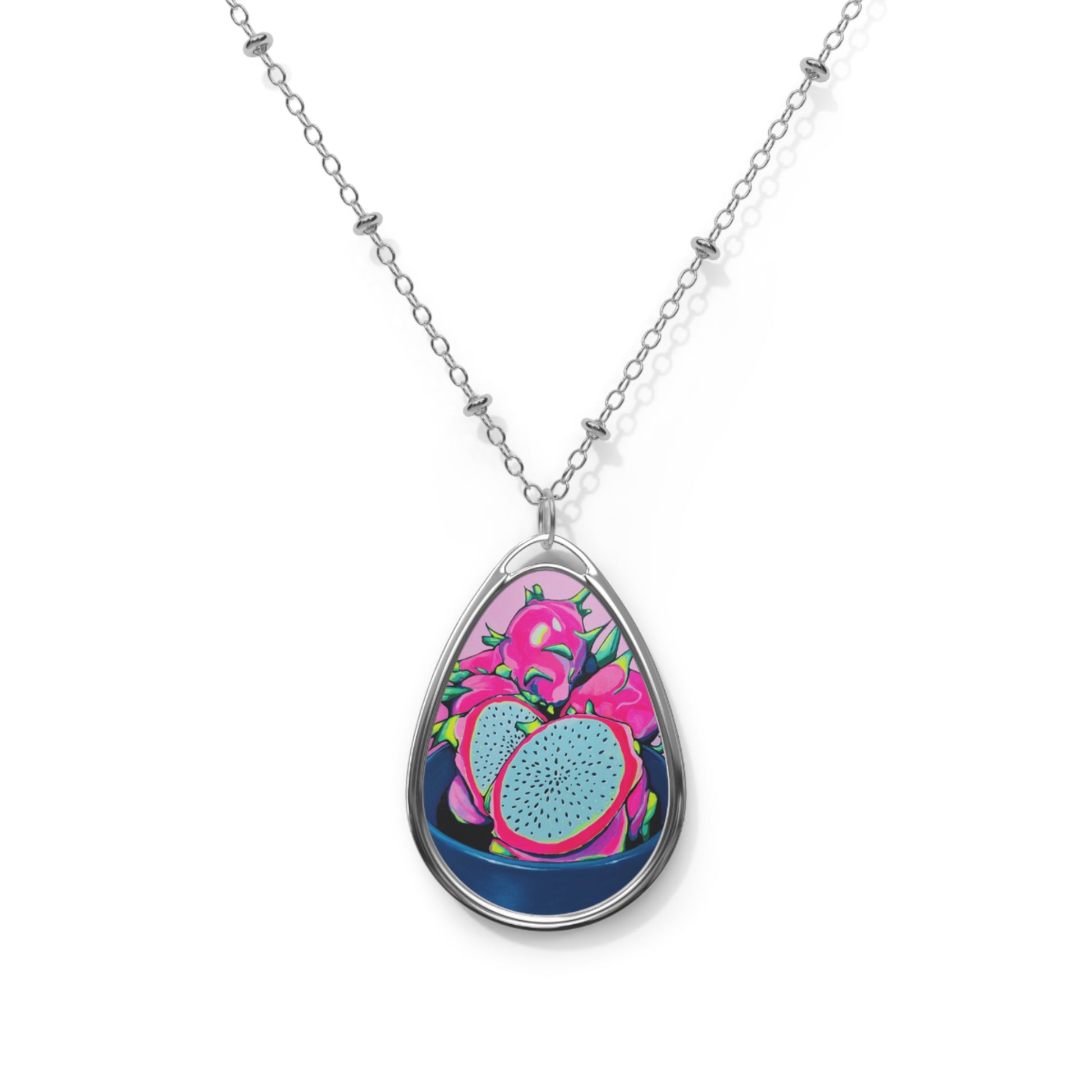 This vibrant Neon Pink Dragon Fruit Necklace is perfect for those who love unique and eye-catching accessories. The elipse shape and glossy finish make it a statement piece that can easily elevate any outfit. Ideal for fruit lovers, trendsetters, and those who enjoy bold accessories. Perfect for summer, tropical-themed parties, or as a gift for someone with a fun and colorful style.