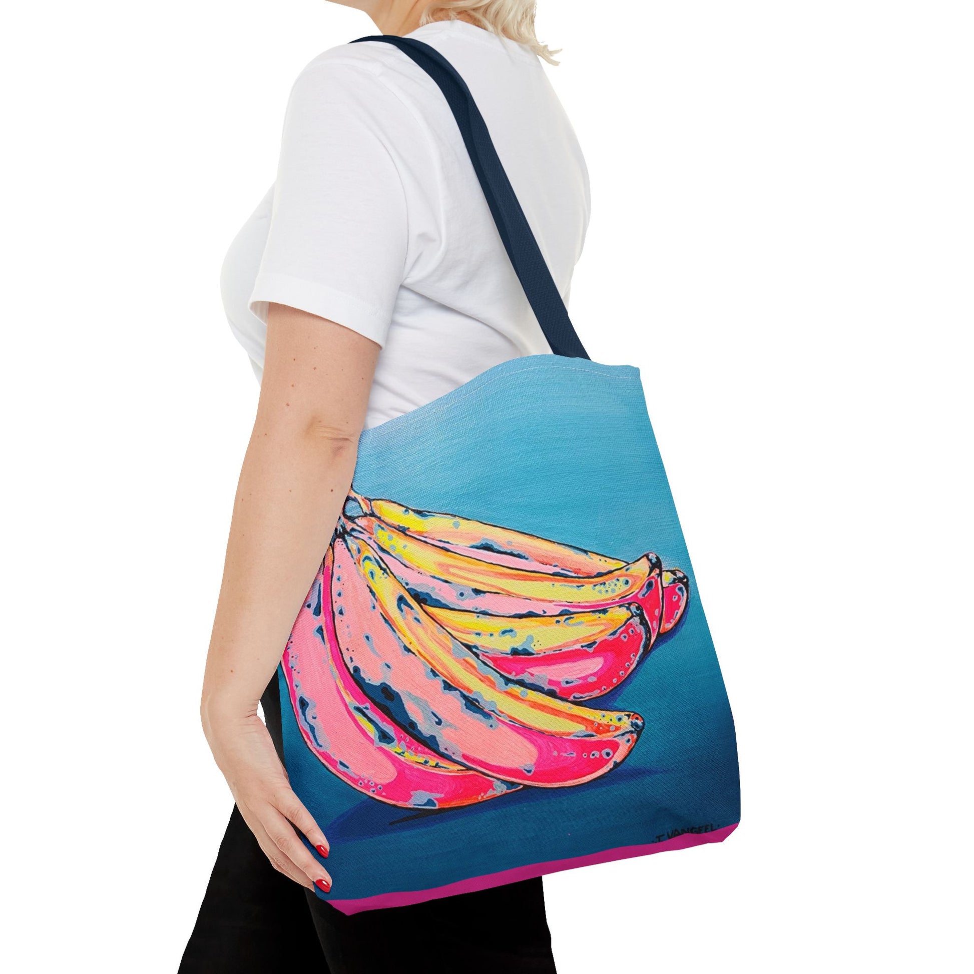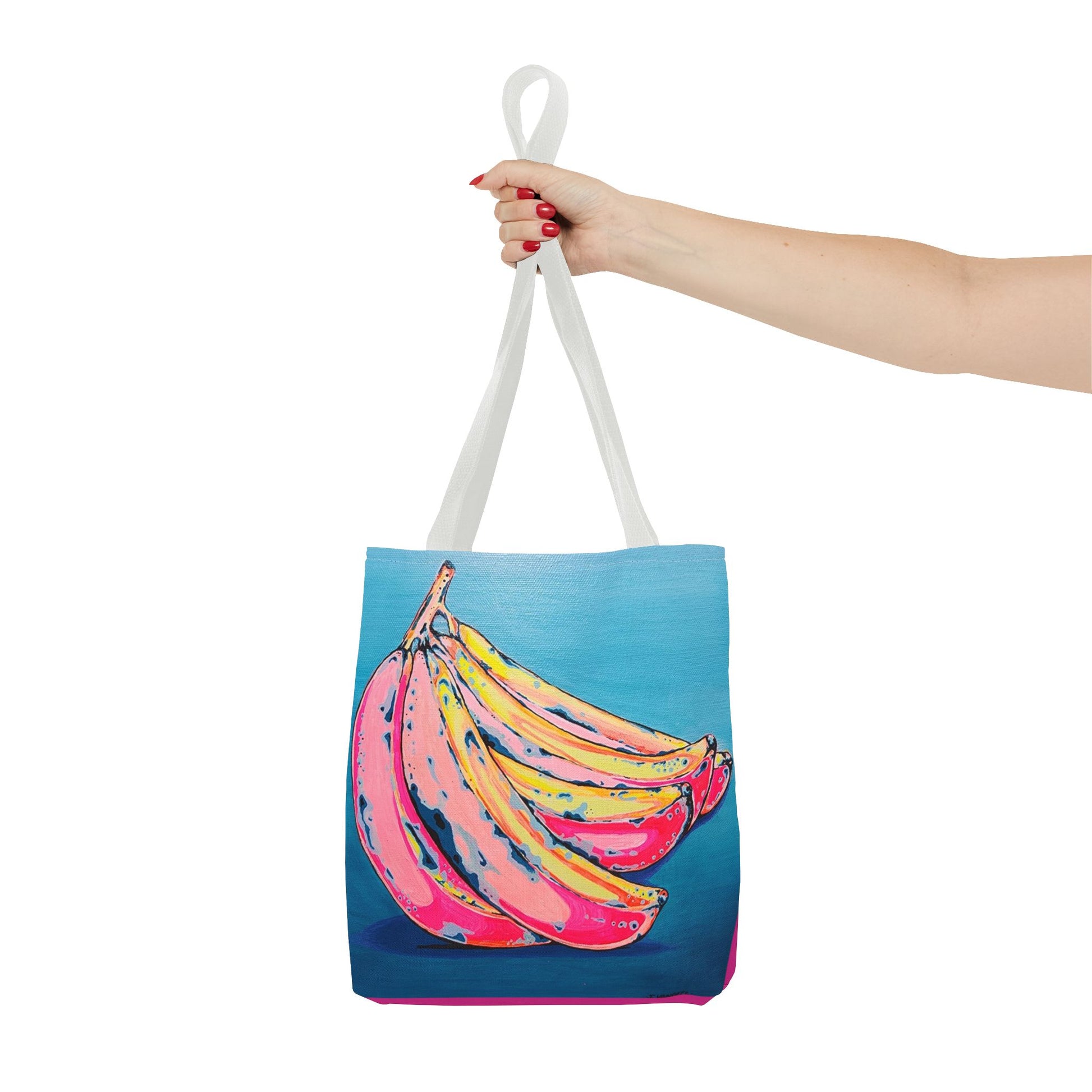 This Banana Tote Bag features a fun and colorful artist design, making it a cheerful accessory for everyday use. It is relevant for those who enjoy unique and vibrant designs, perfect for carrying groceries, books, or other essentials. This Tote Bag would be great for summer outings, beach days, or even as a gift for a friend.