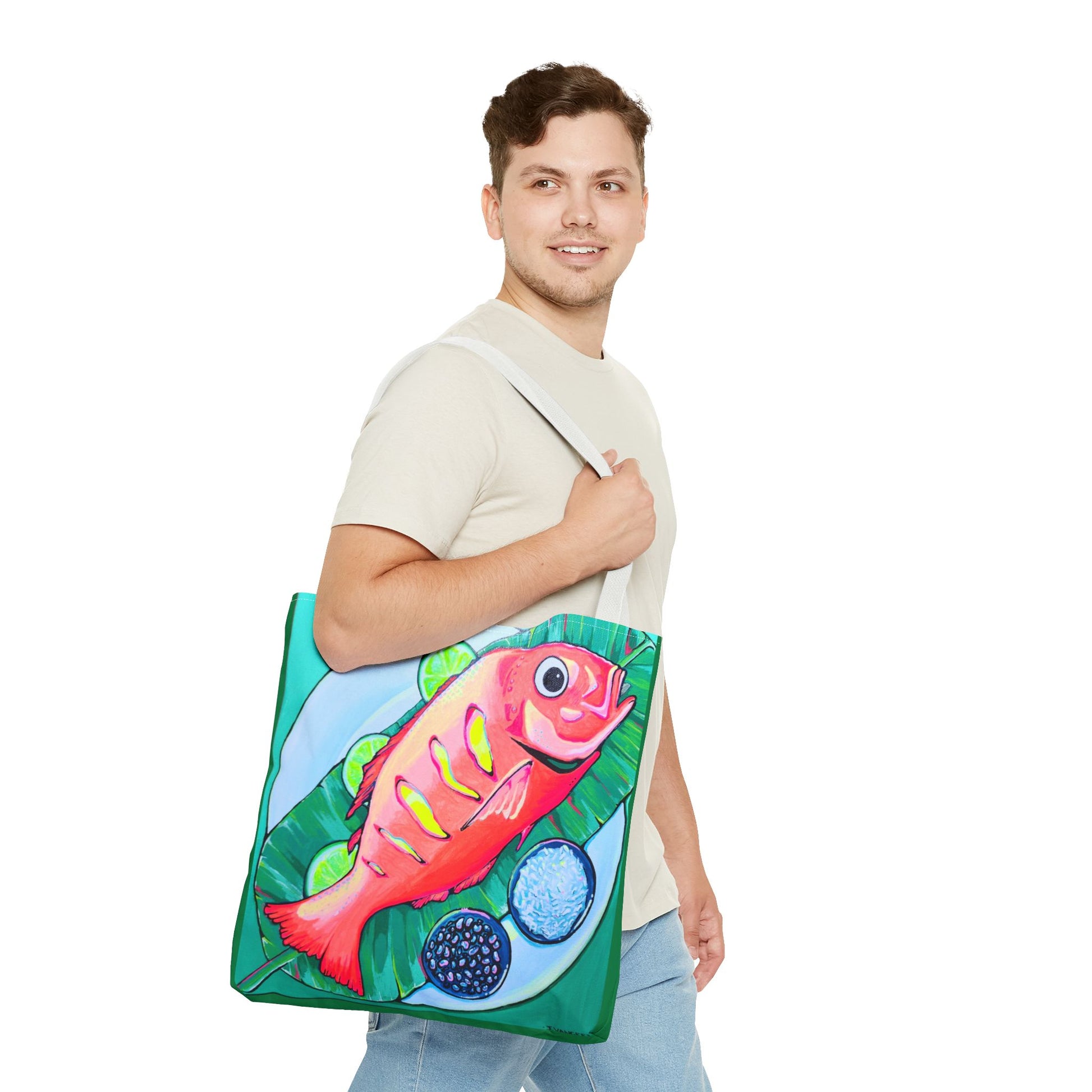 Premium Neon Fried Fish Tote Bag, Original Artist Design, Reusable Shopping Tote, Eco-Friendly
