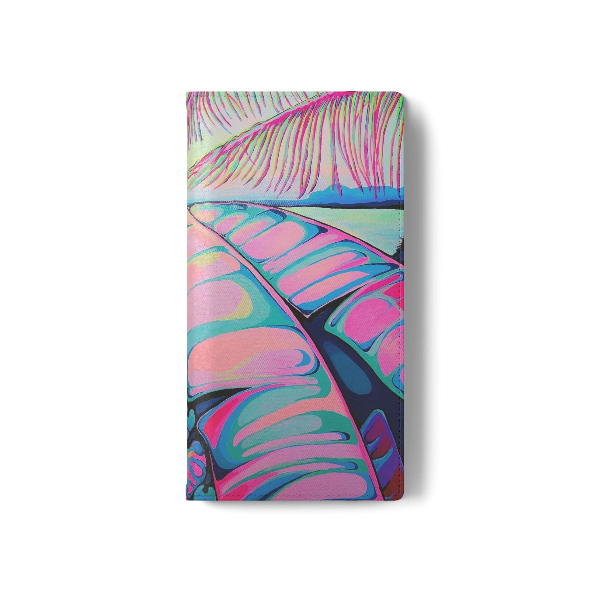 A lively flip phone case that brings color and curiosity to everyday carry. The lively tropical artwork — Serenity Bocas — turns your phone into a tiny window to island living. The folio-style design keeps essentials together: stitched card pockets for quick access, a durable polycarbonate inner shell for reliable protection, and a flat elastic closure to hold everything in place. Built from cruelty-free faux leather, it feels luxe without harming animals and includes a small care slip so the case stays looking fresh. For Samsung S24 and S25 users, a discreet D-ring allows attachment of a wrist or neck strap for hands-free moments on commutes or travels. The fold-out stand supports comfortable media viewing while ports remain open for easy charging and connectivity. Thoughtful, colorful, and practical — this case adds personality while keeping your phone and essentials secure.