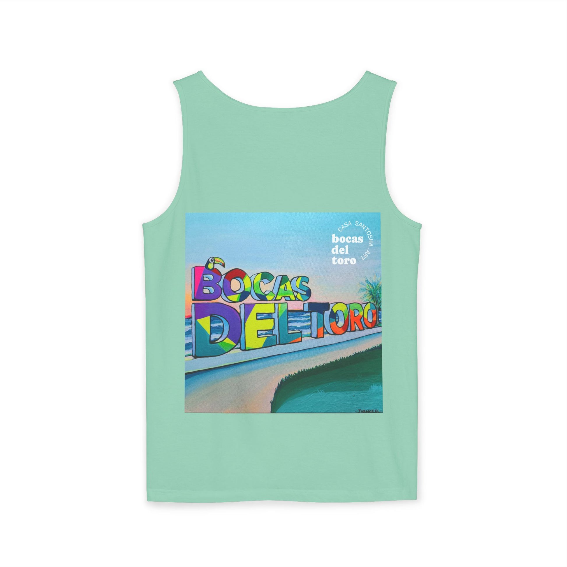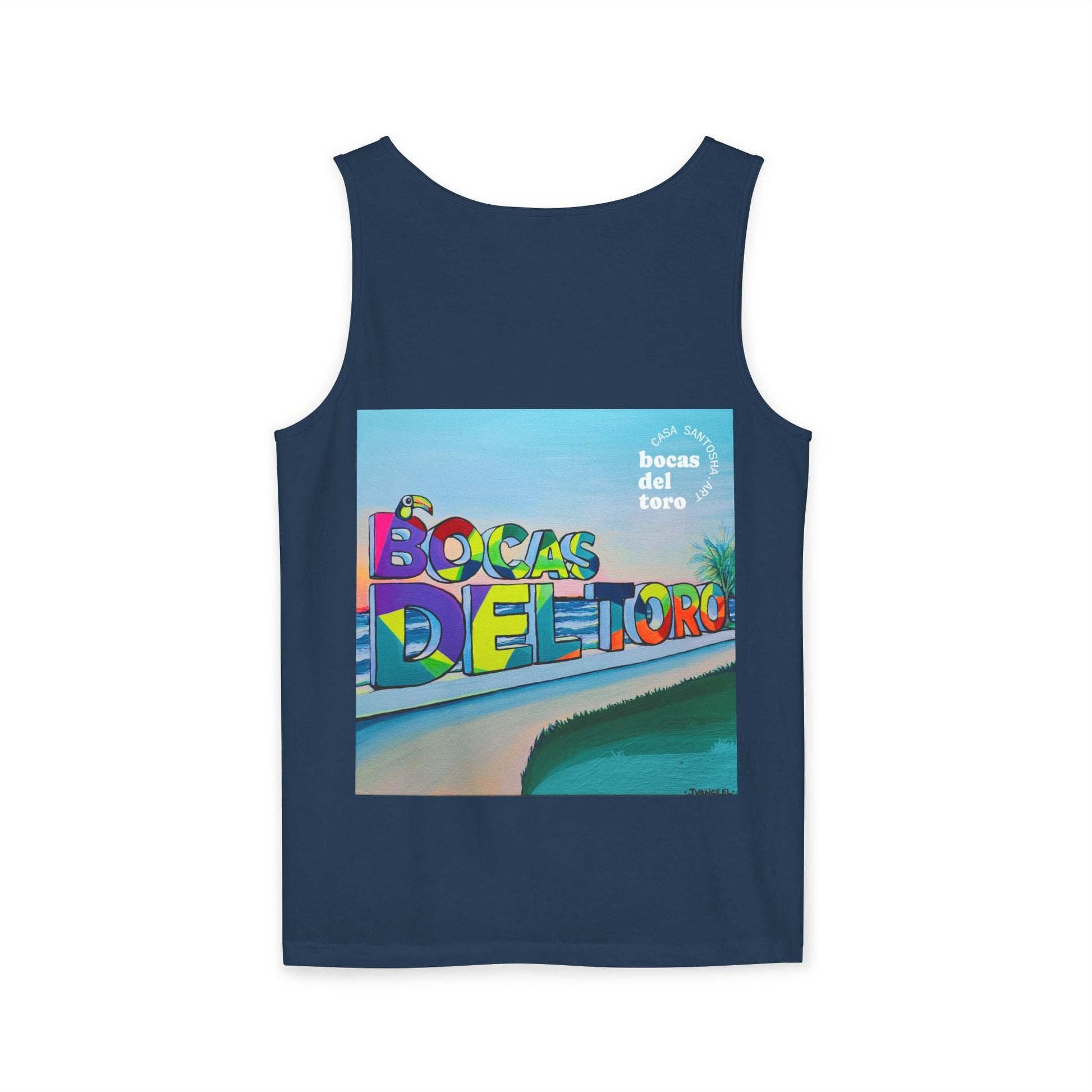 Unisex Bocas del Toro Sign Tank Top - Perfect for Summer Vibes. This tank top exudes a fun and vibrant summer feel, perfect for casual outings or beach days. Ideal for those who enjoy bright, bold colors and want to stand out in the crowd. Perfect for summer parties, music festivals, and beach vacations.