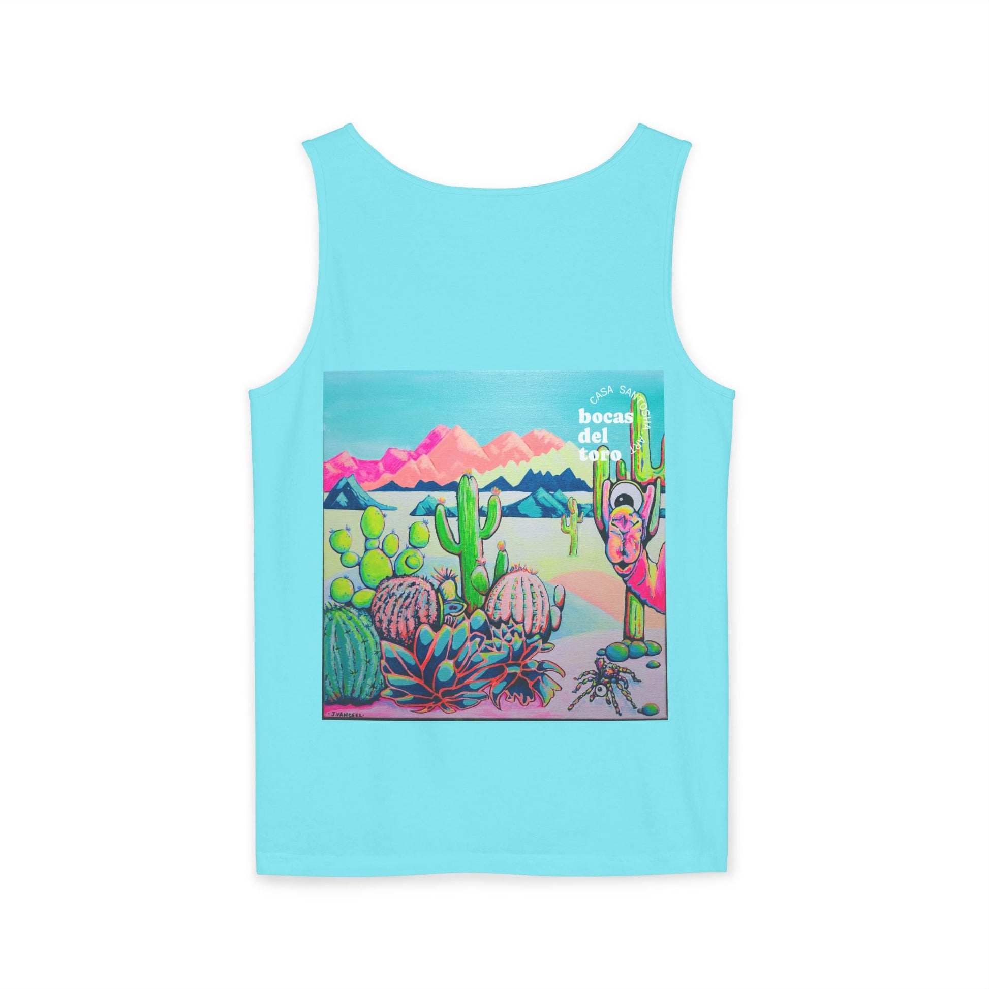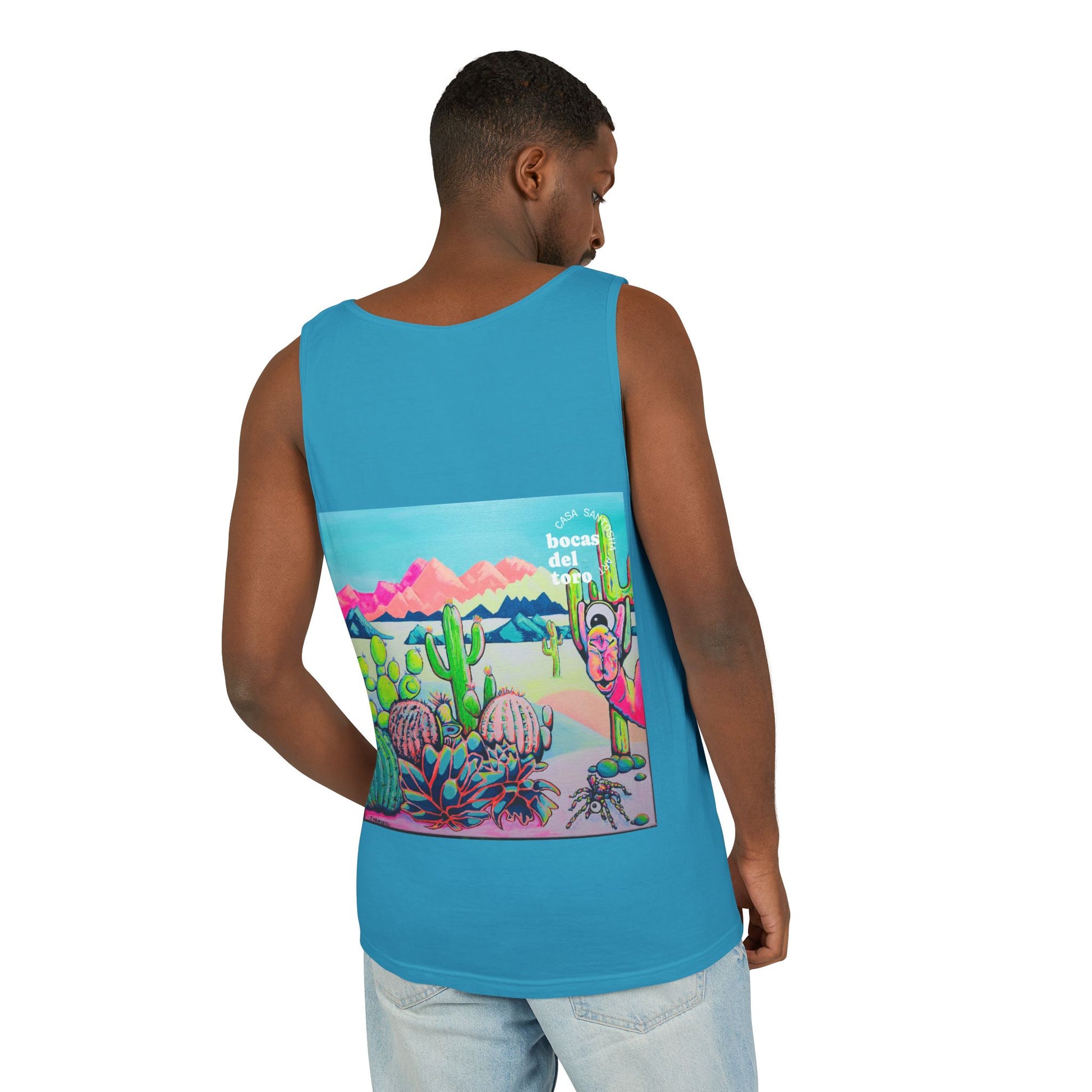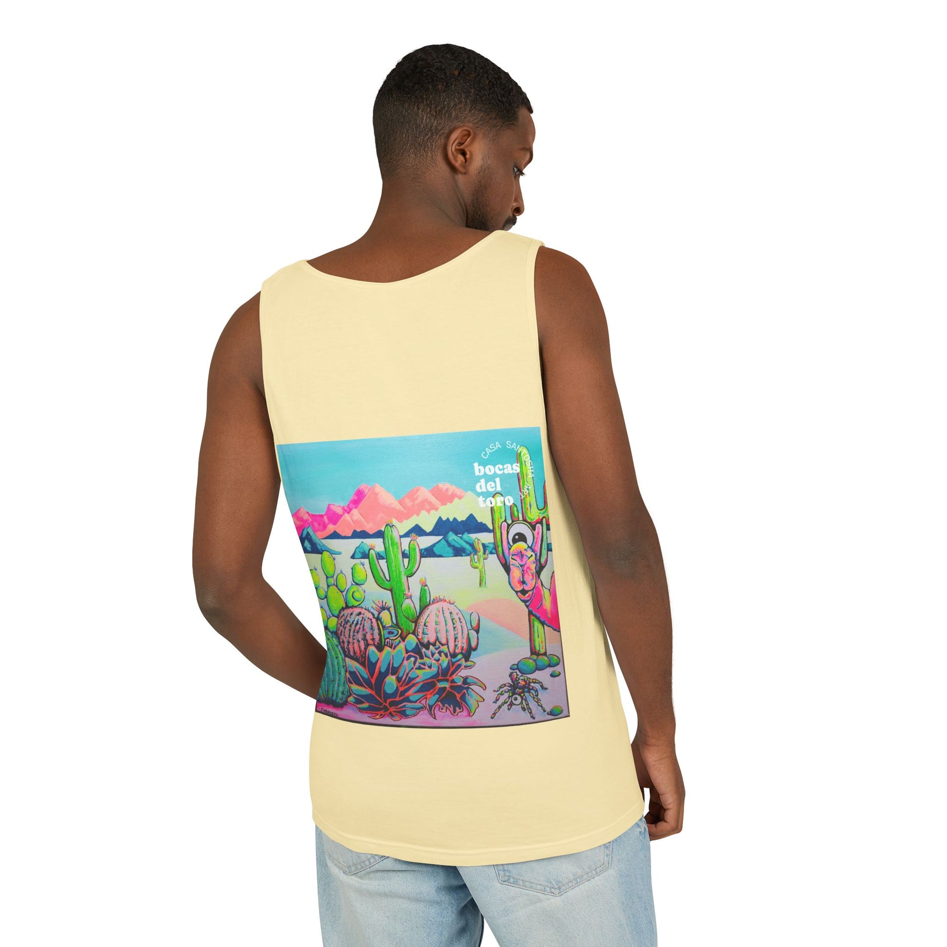 Unisex Cyclops Camel Tank Top - Perfect for Summer Vibes. This tank top exudes a fun and vibrant summer feel, perfect for casual outings or beach days. Ideal for those who enjoy bright, bold colors and want to stand out in the crowd. Perfect for summer parties, music festivals, and beach vacations.