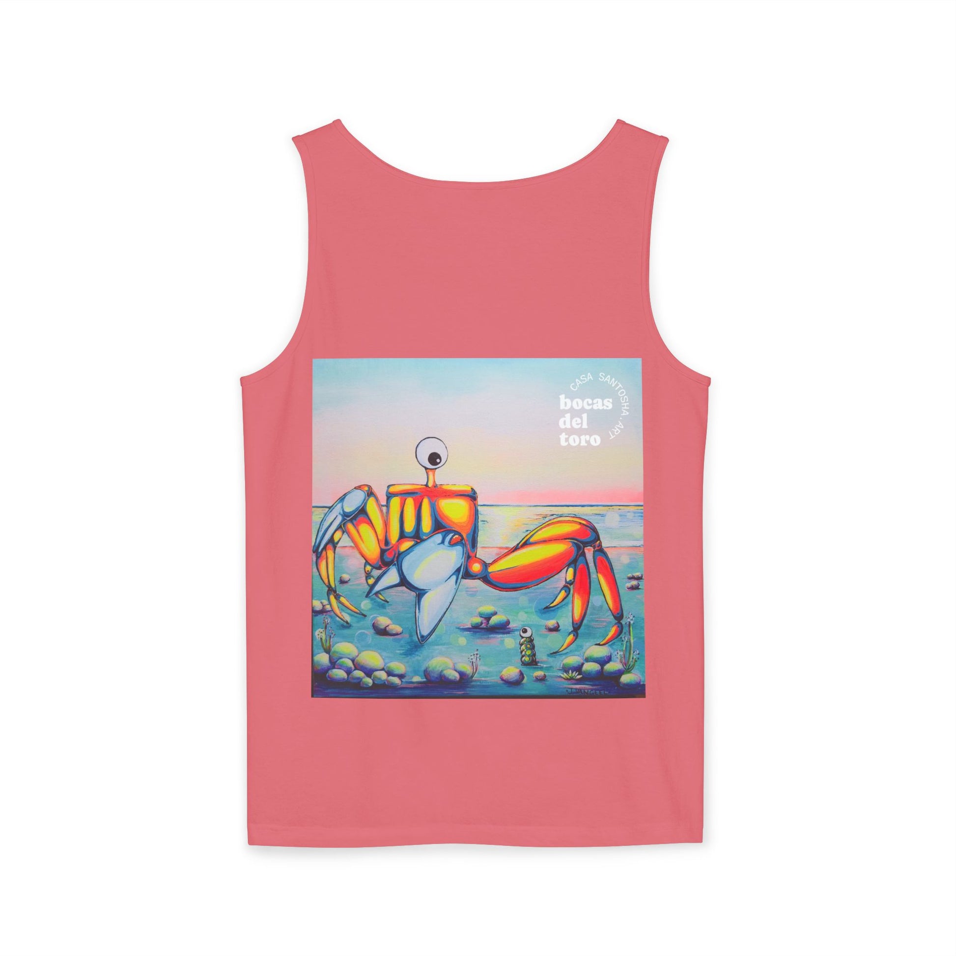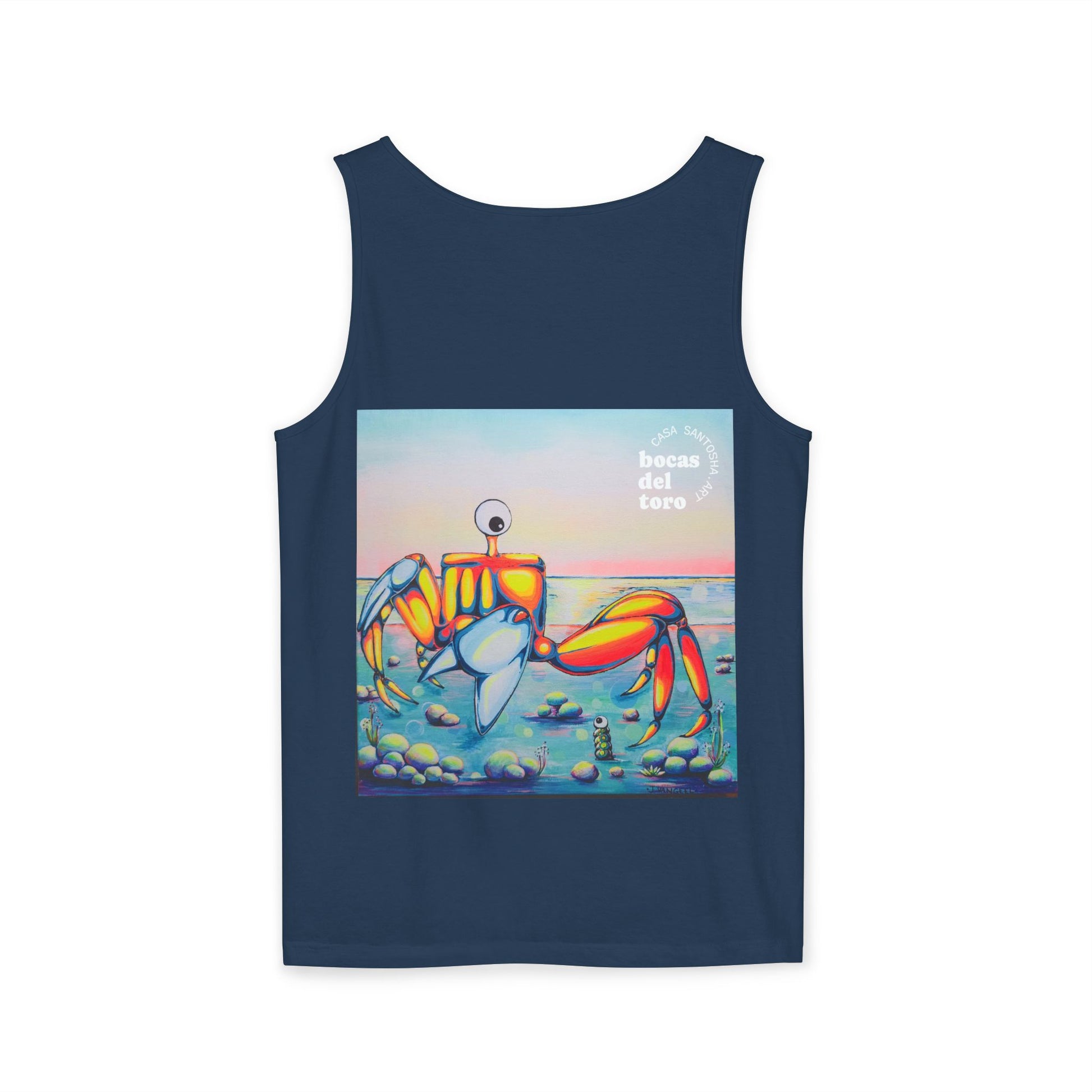 Unisex Cyclops Crab Tank Top - Perfect for Summer Vibes. This tank top exudes a fun and vibrant summer feel, perfect for casual outings or beach days. Ideal for those who enjoy bright, bold colors and want to stand out in the crowd. Perfect for summer parties, music festivals, and beach vacations.