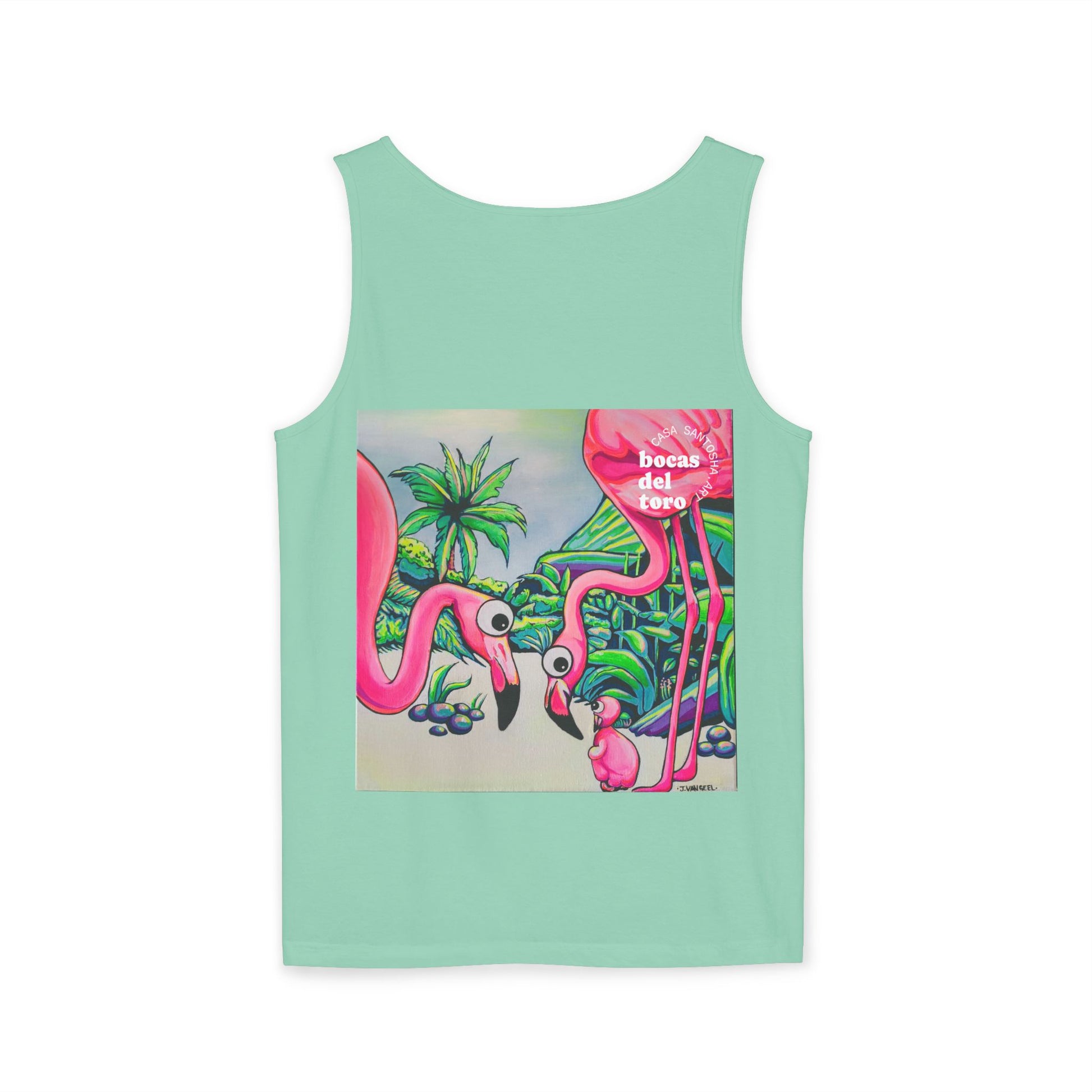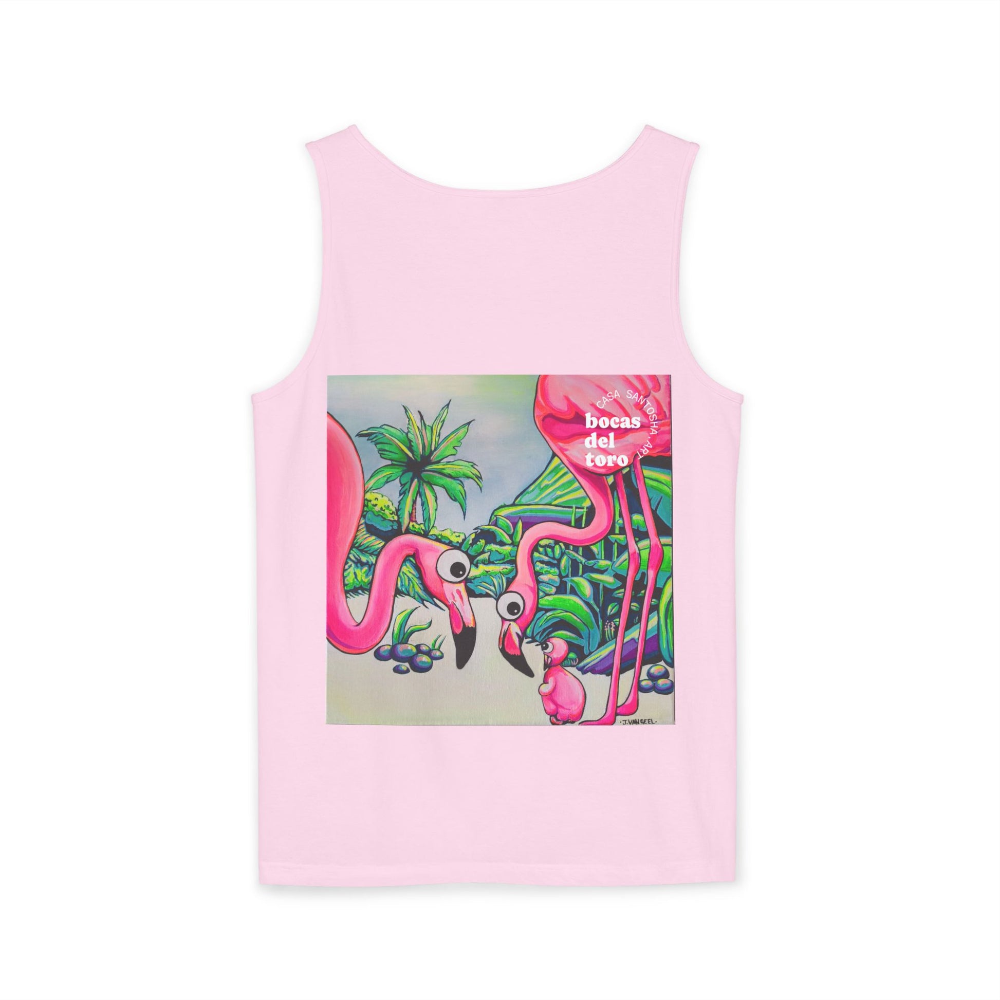 Unisex Cyclops Flamingo Family Tank Top - Perfect for Summer Vibes. This tank top exudes a fun and vibrant summer feel, perfect for casual outings or beach days. Ideal for those who enjoy bright, bold colors and want to stand out in the crowd. Perfect for summer parties, music festivals, and beach vacations.