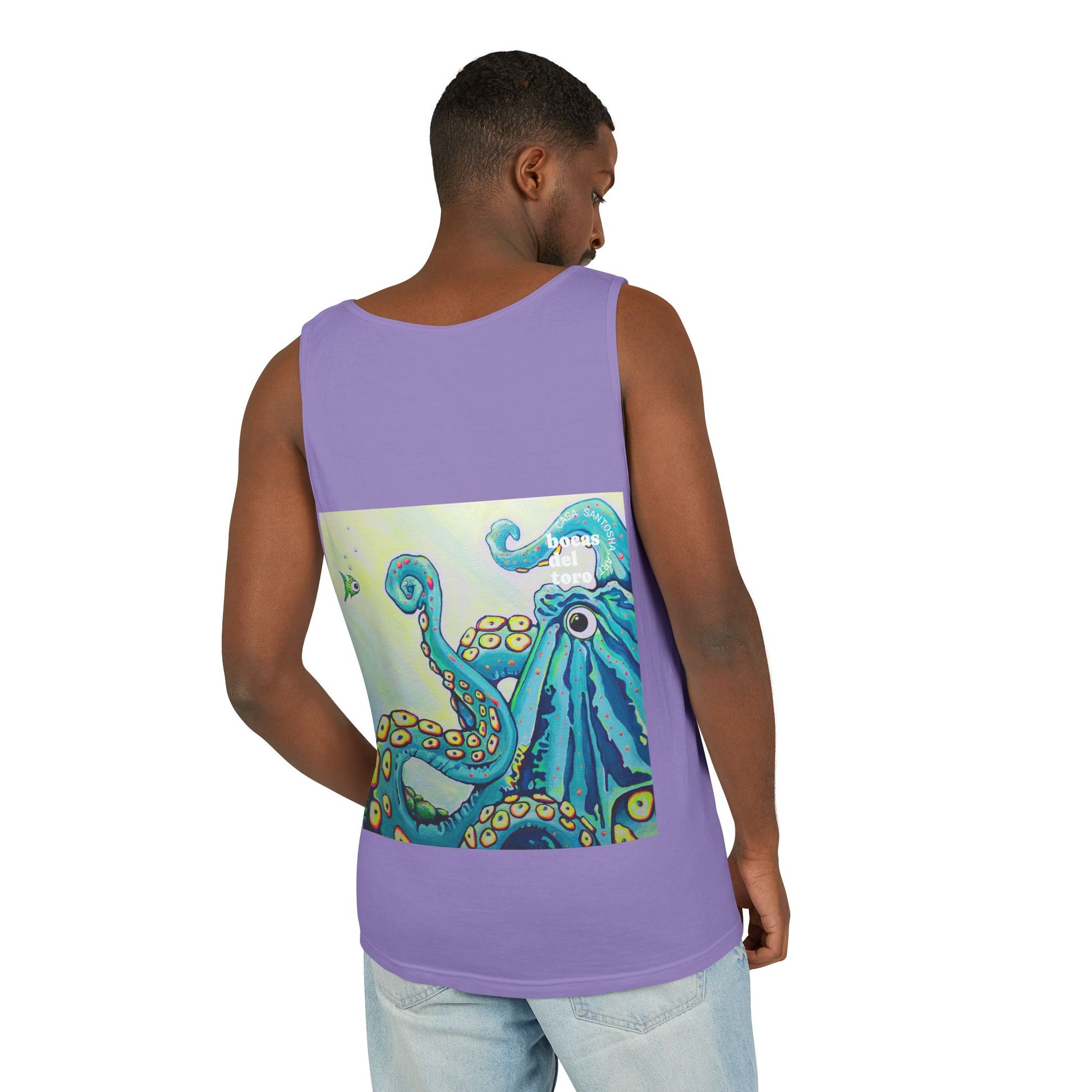 Unisex Cyclops Octopus Tank Top - Perfect for Summer Vibes. This tank top exudes a fun and vibrant summer feel, perfect for casual outings or beach days. Ideal for those who enjoy bright, bold colors and want to stand out in the crowd. Perfect for summer parties, music festivals, and beach vacations.
