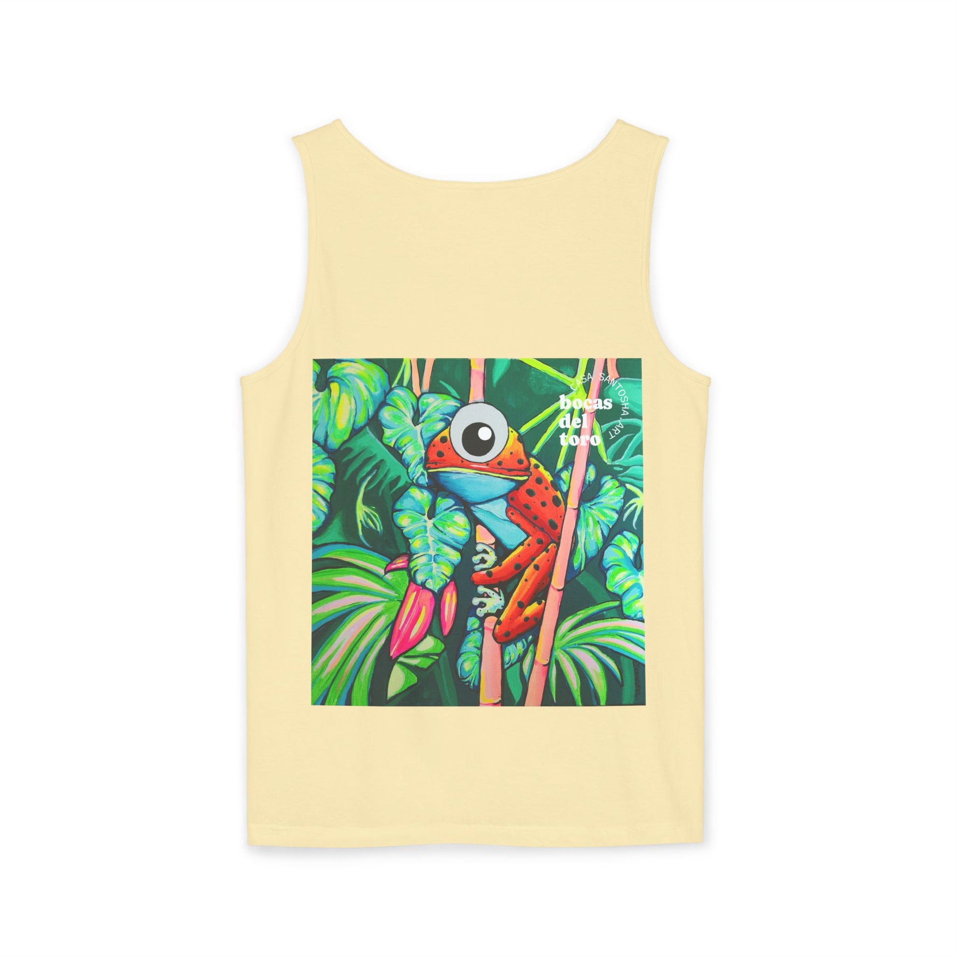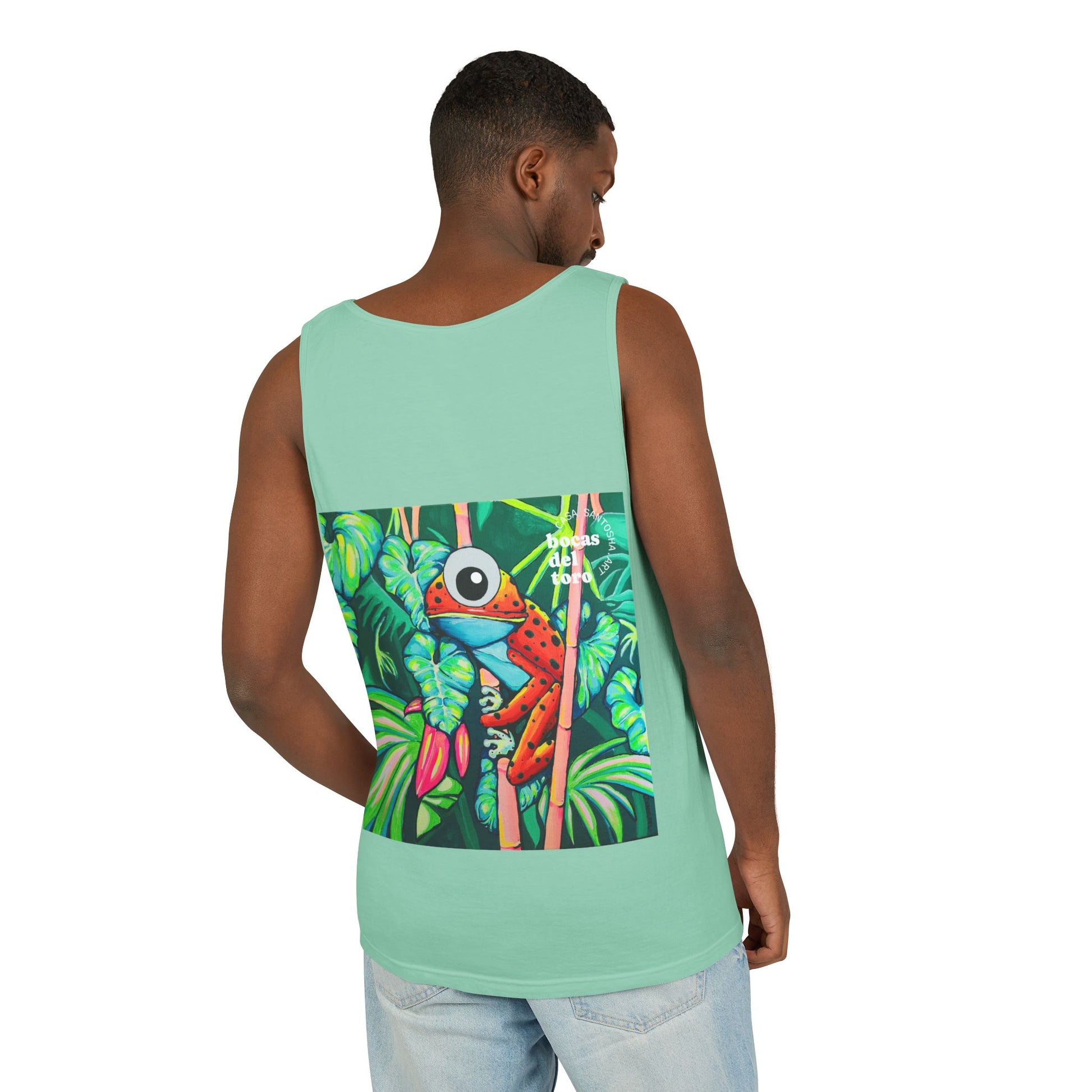 Unisex Cyclops Red Frog Tank Top - Perfect for Summer Vibes. This tank top exudes a fun and vibrant summer feel, perfect for casual outings or beach days. Ideal for those who enjoy bright, bold colors and want to stand out in the crowd. Perfect for summer parties, music festivals, and beach vacations.