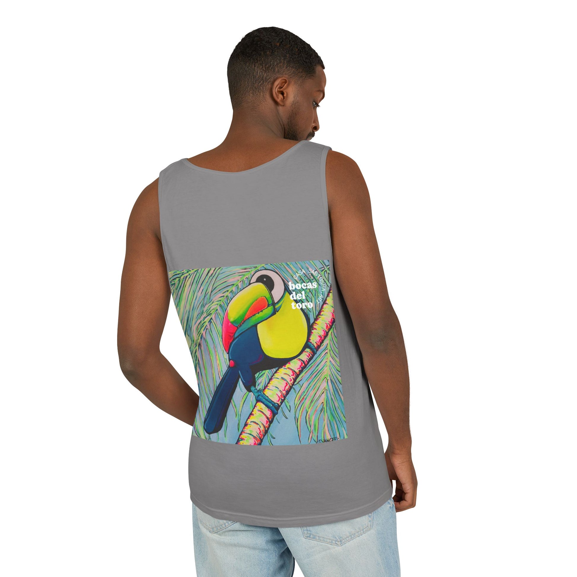 Unisex Cyclops Toucan Tank Top - Perfect for Summer Vibes. This tank top exudes a fun and vibrant summer feel, perfect for casual outings or beach days. Ideal for those who enjoy bright, bold colors and want to stand out in the crowd. Perfect for summer parties, music festivals, and beach vacations.