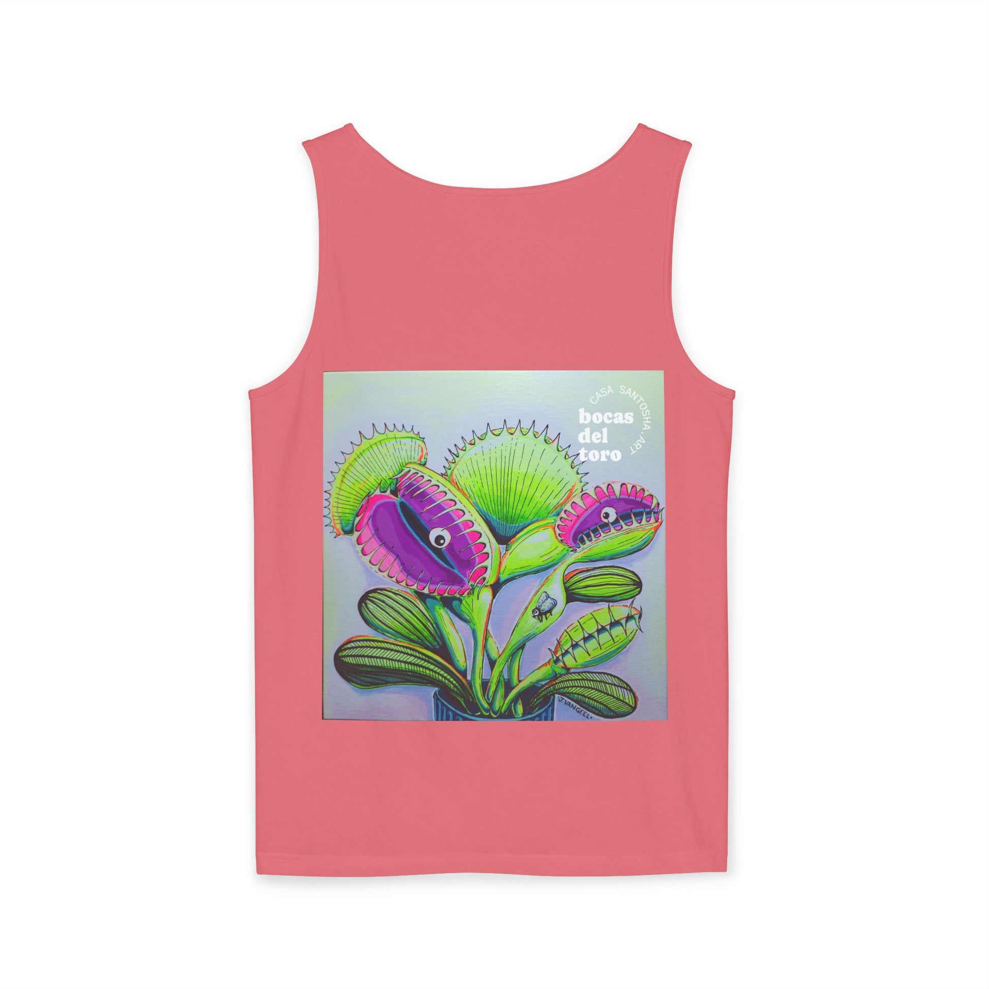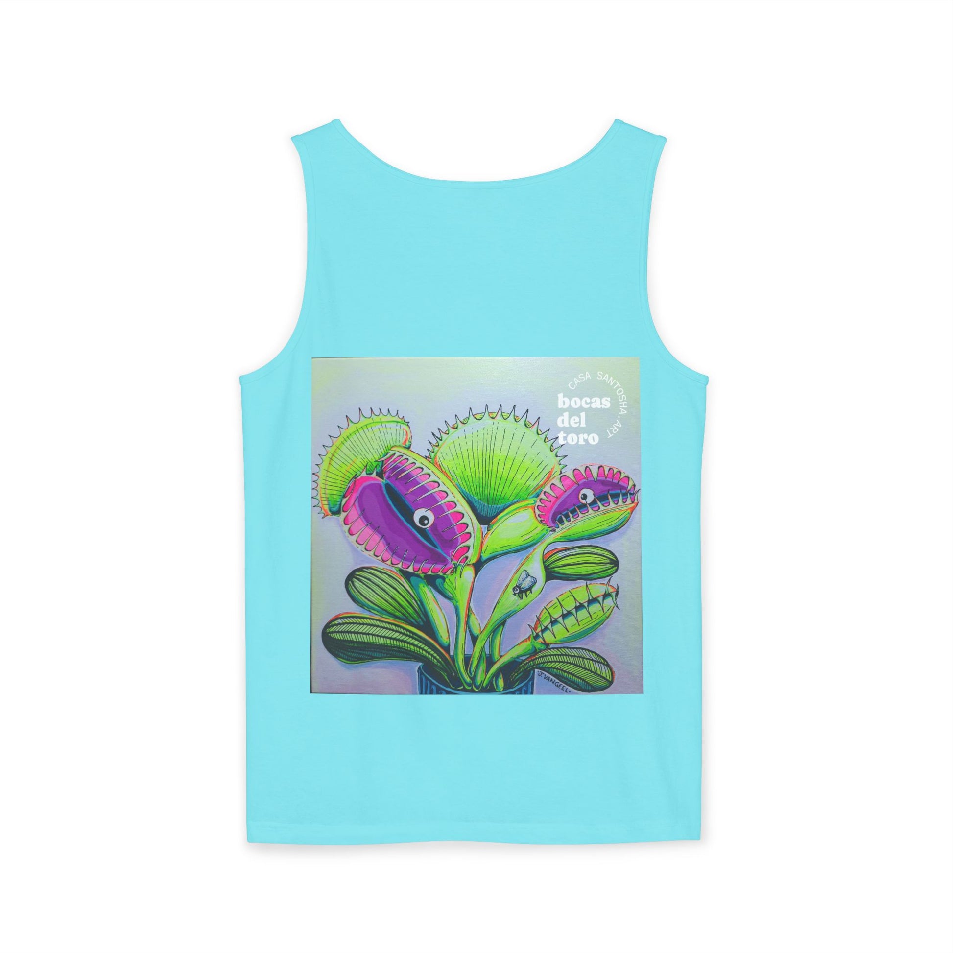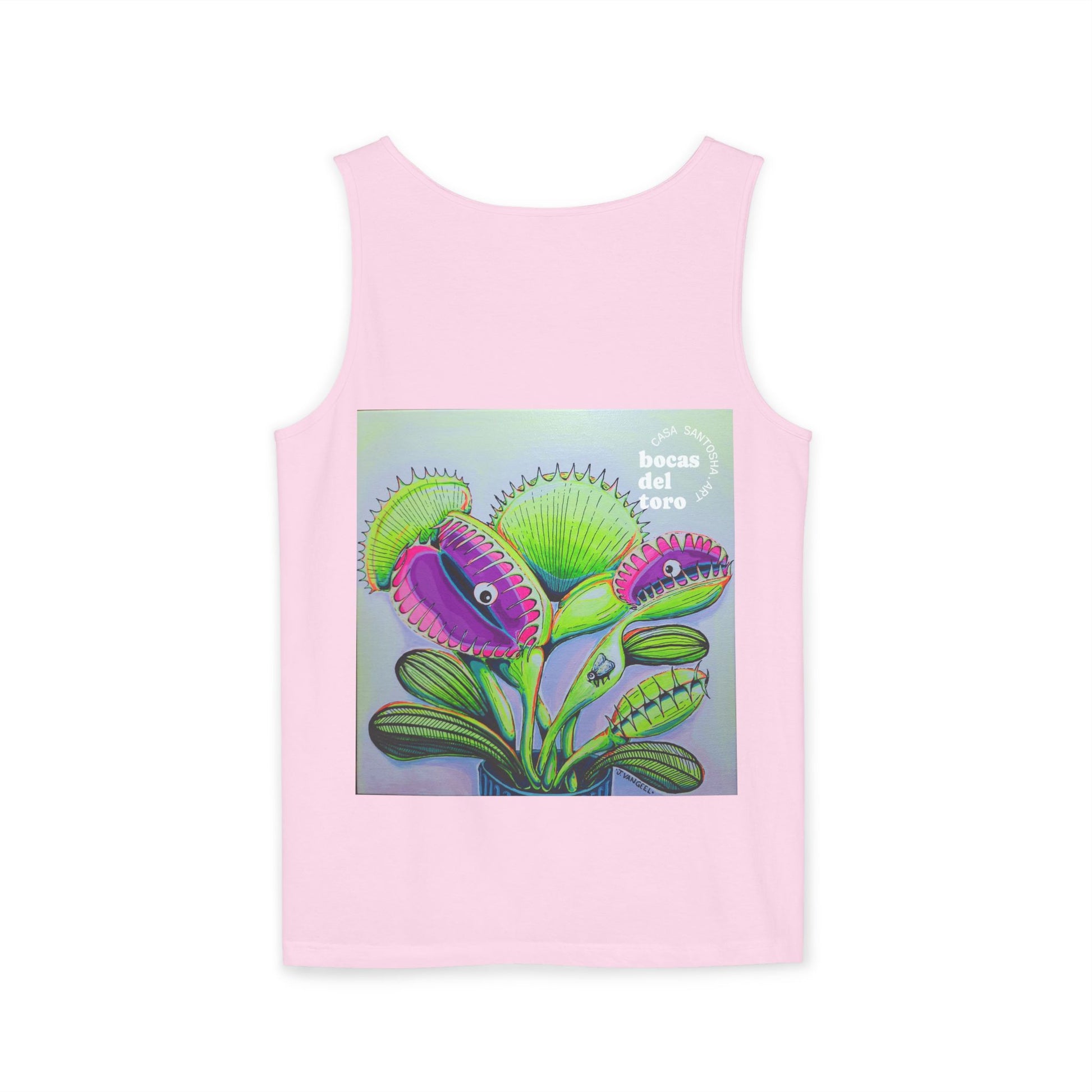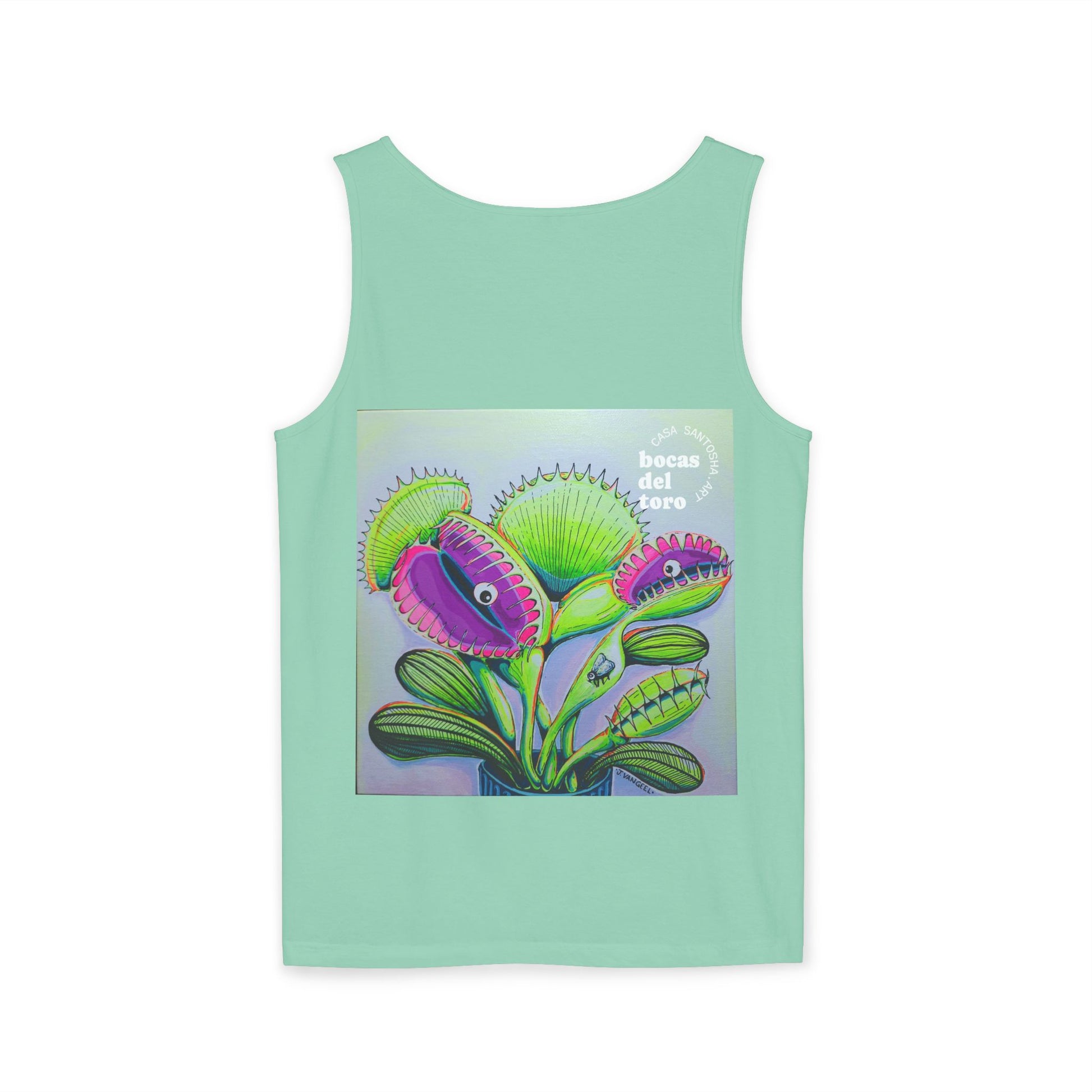 Unisex Cyclops Venus Fly Trap Tank Top - Perfect for Summer Vibes. This tank top exudes a fun and vibrant summer feel, perfect for casual outings or beach days. Ideal for those who enjoy bright, bold colors and want to stand out in the crowd. Perfect for summer parties, music festivals, and beach vacations.