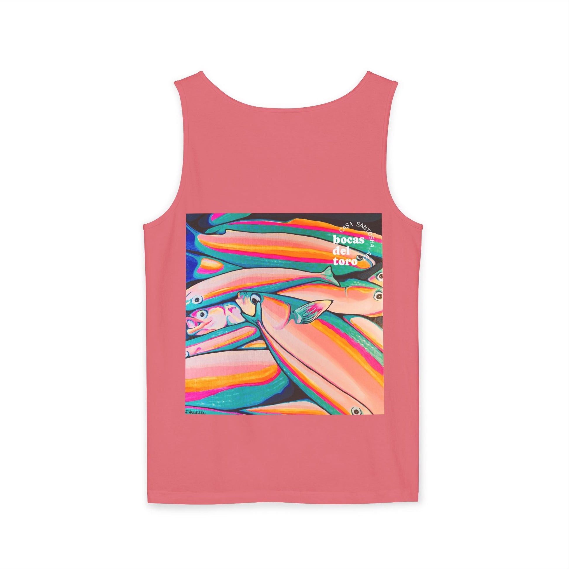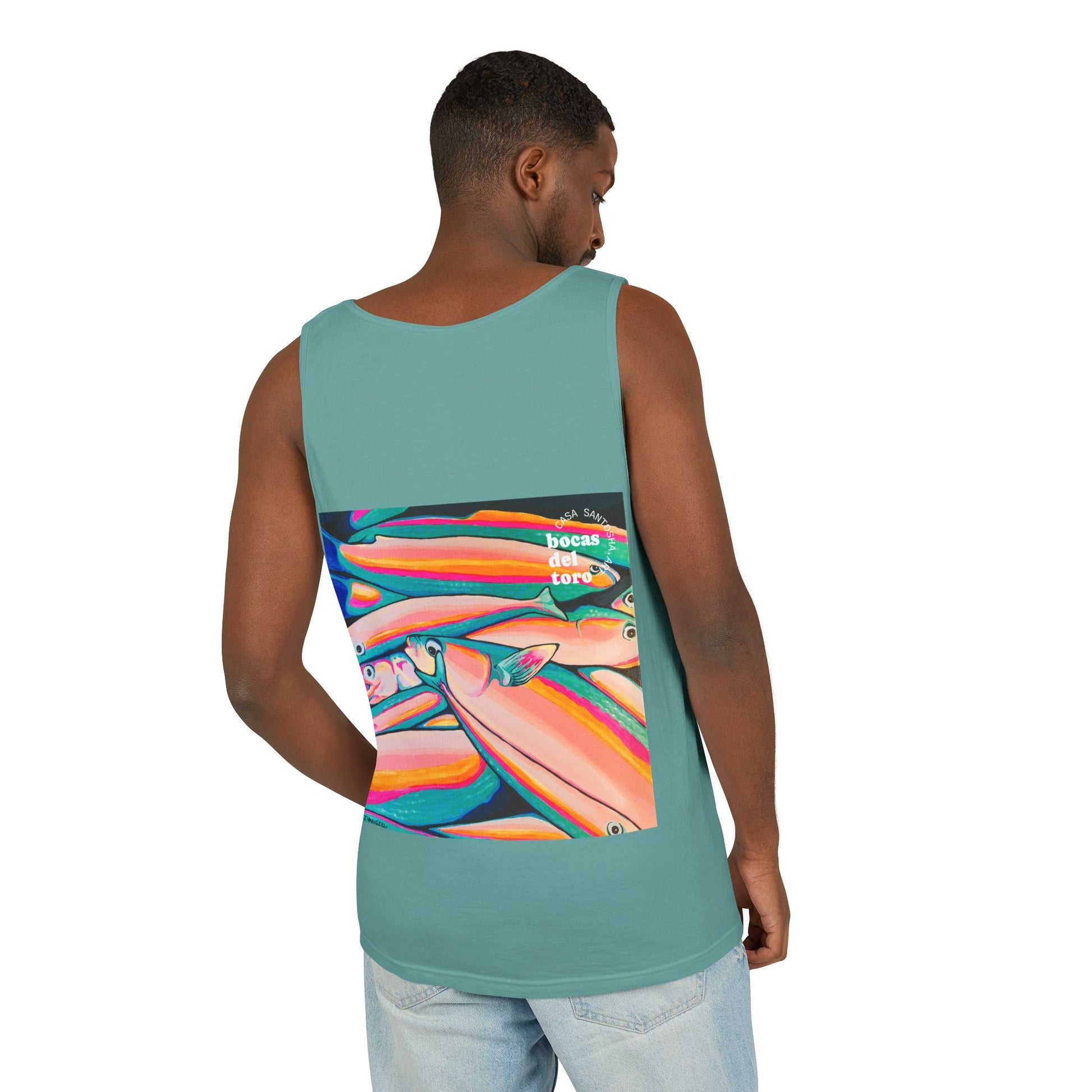 Unisex Neon Fish Tank Top - Perfect for Summer Vibes. This tank top exudes a fun and vibrant summer feel, perfect for casual outings or beach days. Ideal for those who enjoy bright, bold colors and want to stand out in the crowd. Perfect for summer parties, music festivals, and beach vacations.