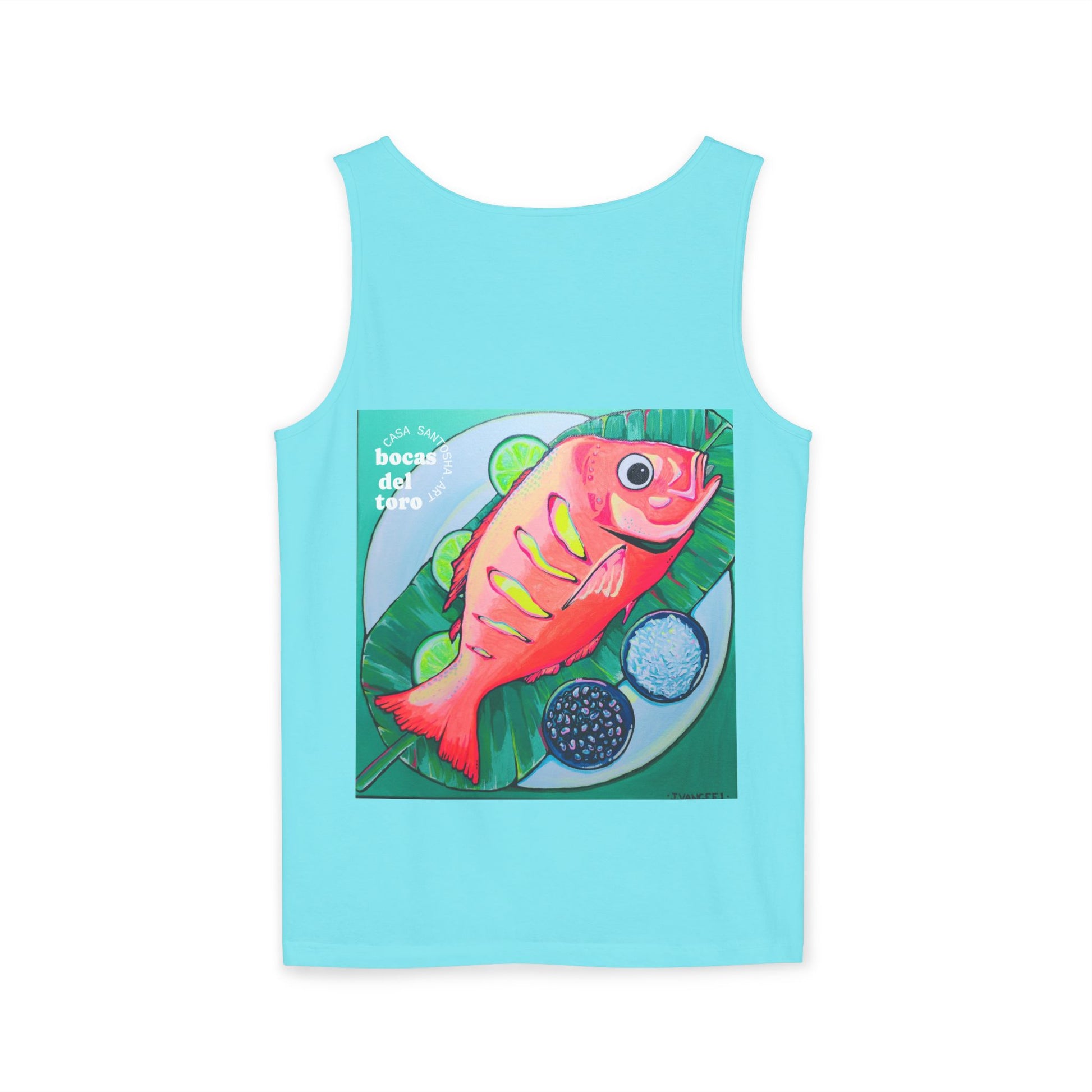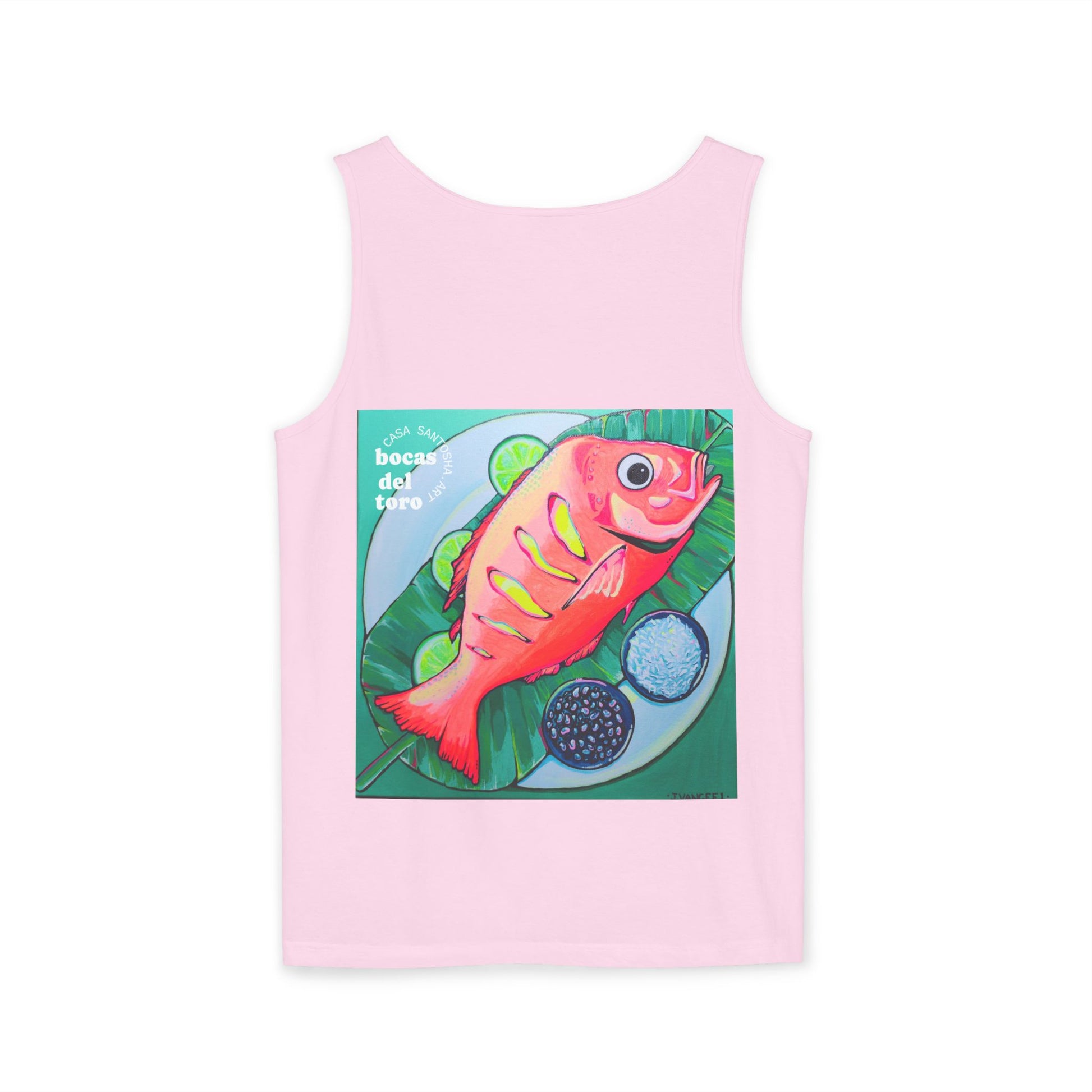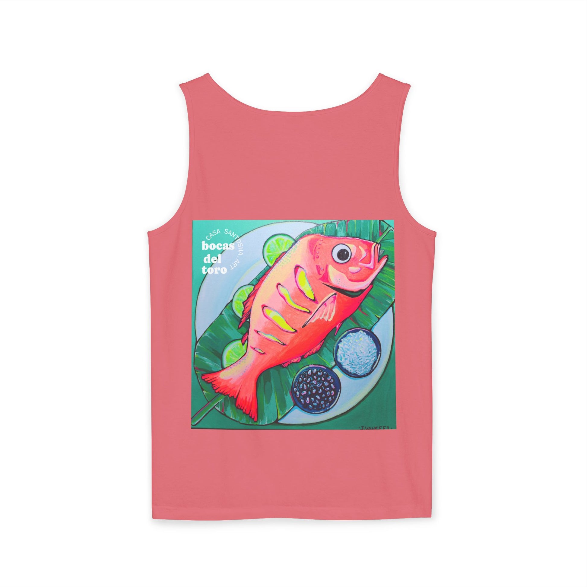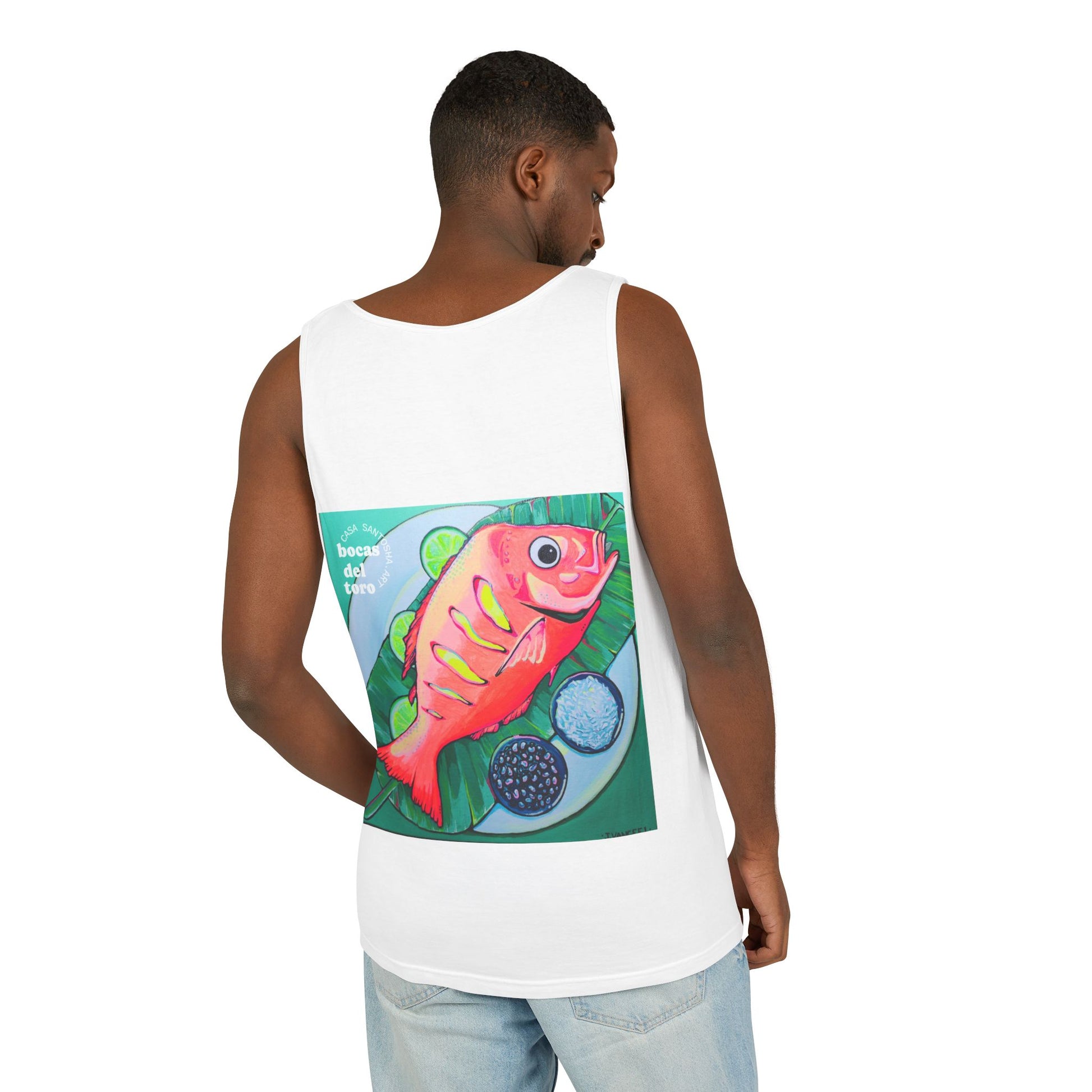 Unisex Neon Fried Fish Tank Top - Perfect for Summer Vibes. This tank top exudes a fun and vibrant summer feel, perfect for casual outings or beach days. Ideal for those who enjoy bright, bold colors and want to stand out in the crowd. Perfect for summer parties, music festivals, and beach vacations.