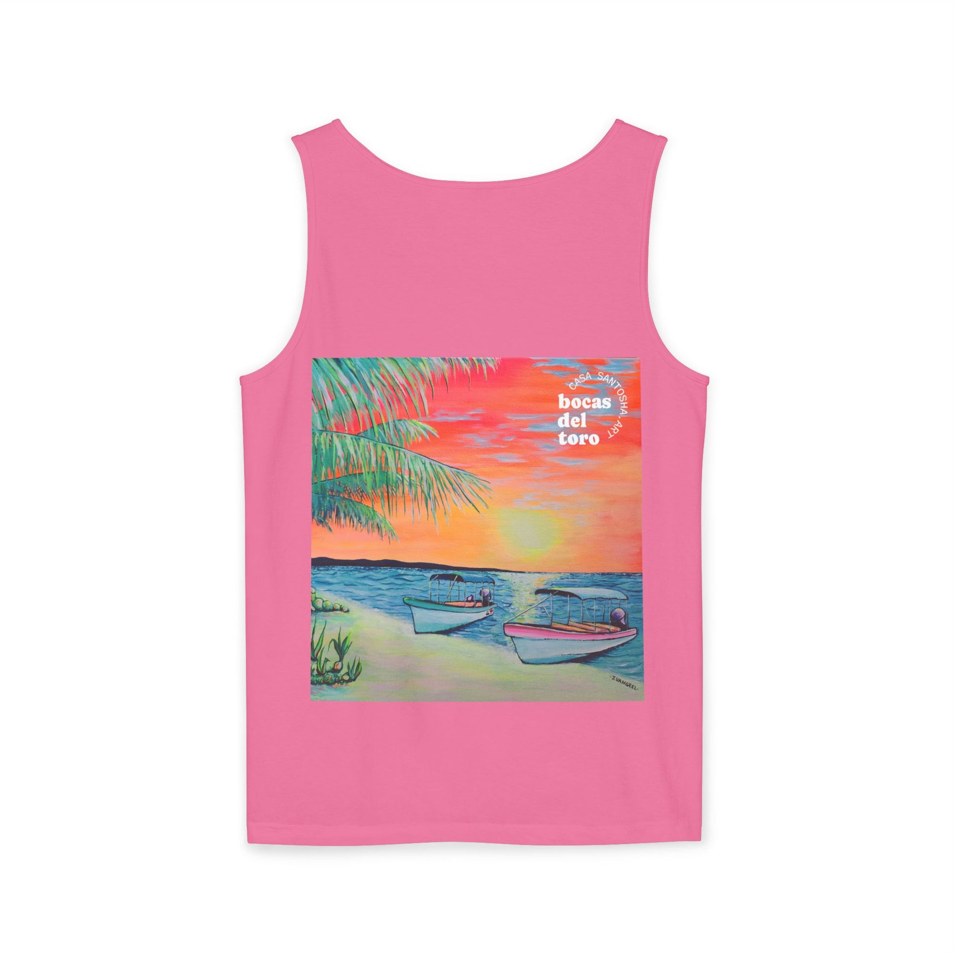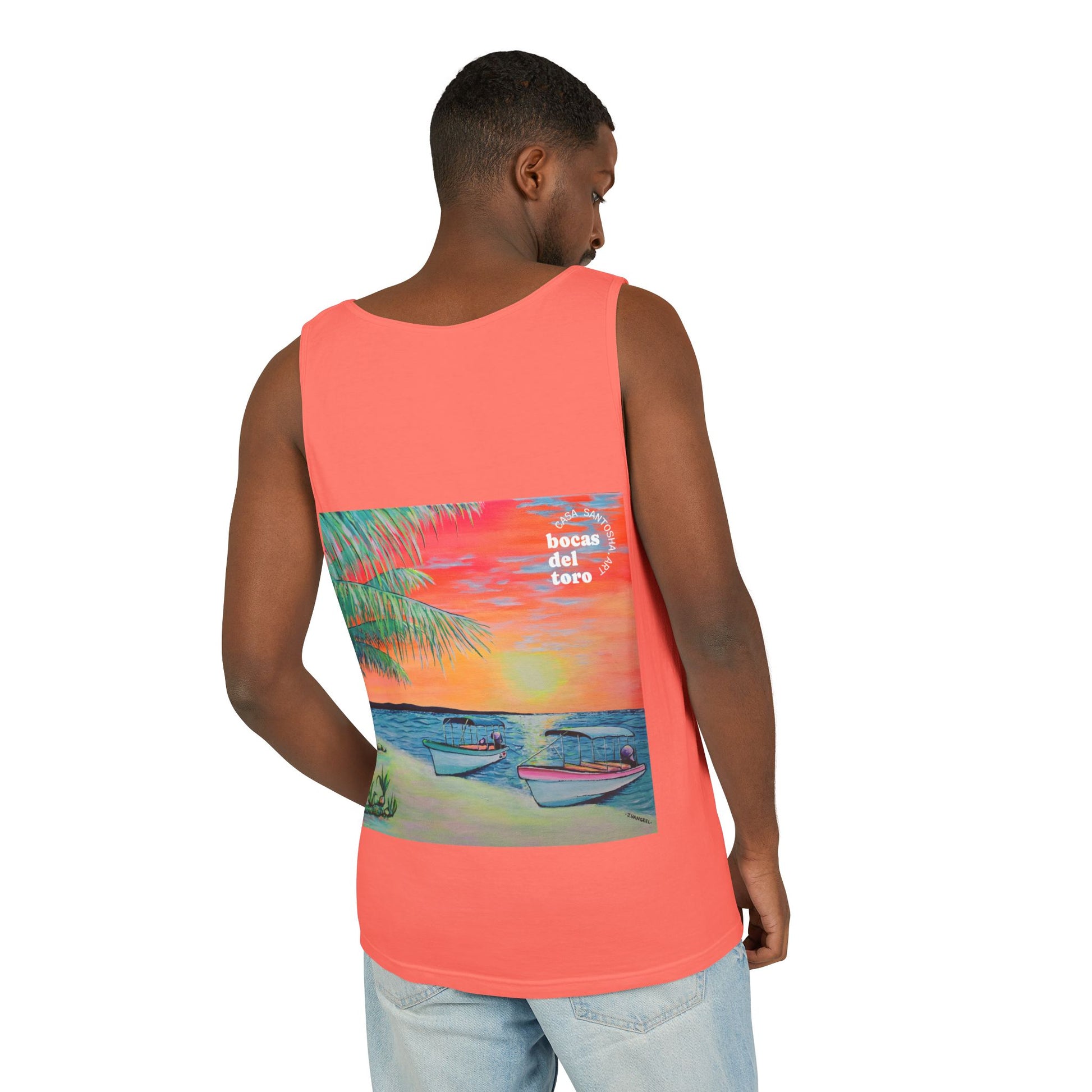 Unisex Panga Express Tank Top - Perfect for Summer Vibes. This tank top exudes a fun and vibrant summer feel, perfect for casual outings or beach days. Ideal for those who enjoy bright, bold colors and want to stand out in the crowd. Perfect for summer parties, music festivals, and beach vacations.