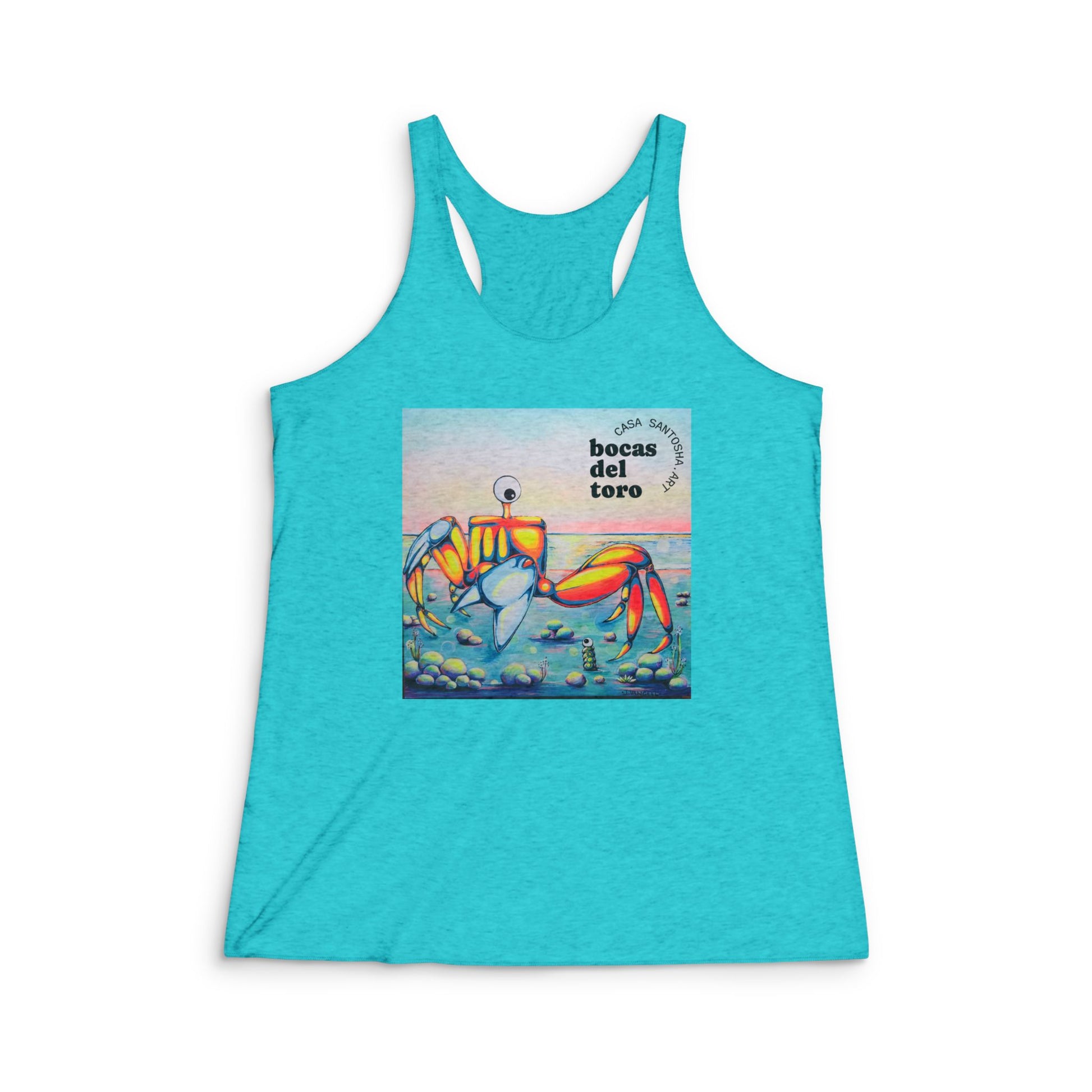 This Women's Cyclops Crab Graphic Tank is perfect for those who love bright and fun designs. The soft tri-blend fabric makes it comfortable to wear all day long. This tank is great for casual wear, workouts, or fun summer outings. It is relevant for summer, beach vacations, tropical themes, and casual hangouts with friends.
