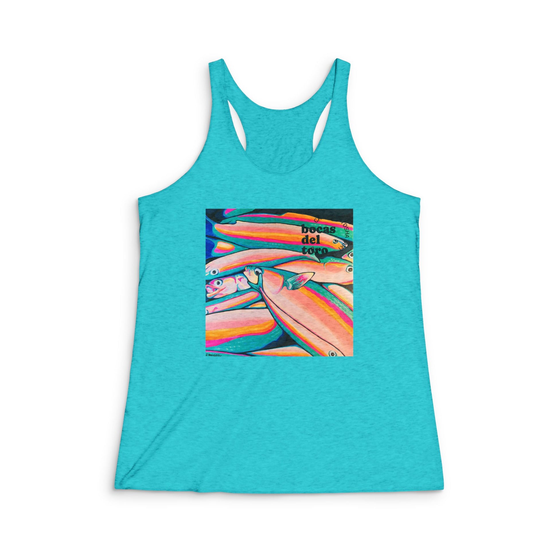 This Women's Neon Fish Graphic Tank is perfect for those who love bright and fun designs. The soft tri-blend fabric makes it comfortable to wear all day long. This tank is great for casual wear, workouts, or fun summer outings. It is relevant for summer, beach vacations, tropical themes, and casual hangouts with friends.